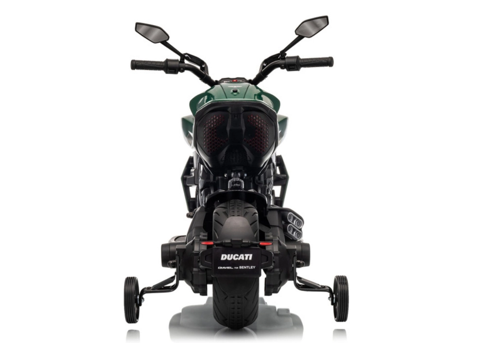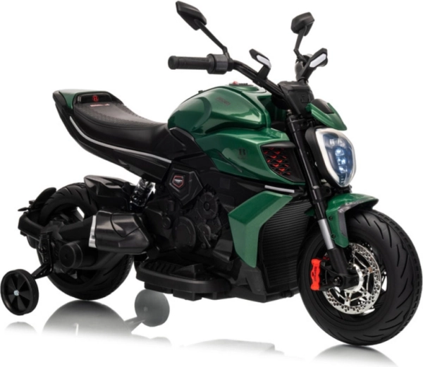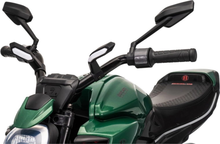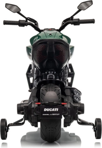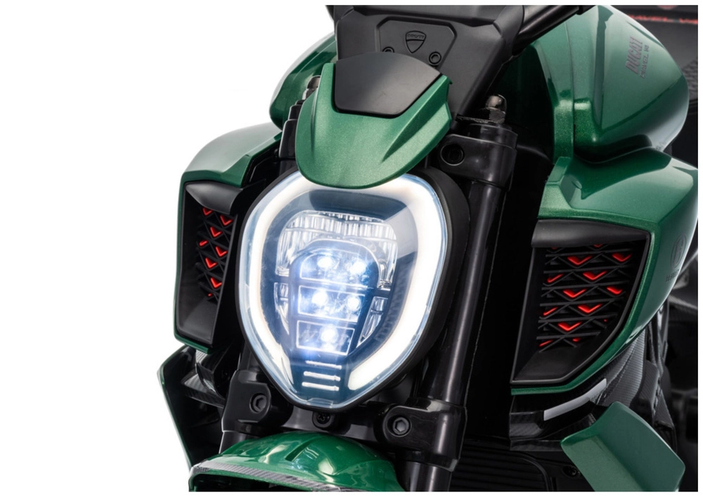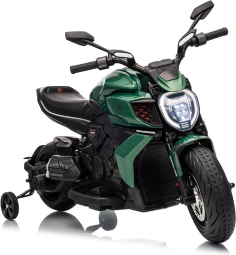 Slogovni otroški električni motor, navdihnjen z modelom DUCATI DIAVEL V4, prinaša otrokom varno zabavo in prve vozne izkušnje. Zahvaljujoč pomožnim kolesom je vožnja stabilna in primerna tudi za začetnike. Motor ponuja realistične podrobnosti, jasno LED luč in udobno upravljanje z krmilom. Odličen za igro na prostem ter razvoj ravnotežja in koordinacije. Stabilizacijska kolesa, LED žaromet, realistična zasnova in baterijski pogon bodo razveselili male dirkače in njihove starše.