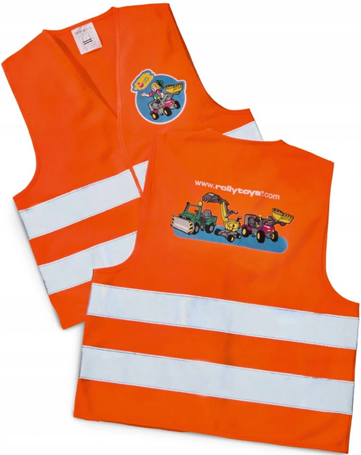 Priložen je oranžen odsevni brezrokavnik, ki poveča varnost otroka pri igri na prostem, na traktorčku ali pri vožnji s kolesom v slabših svetlobnih razmerah.