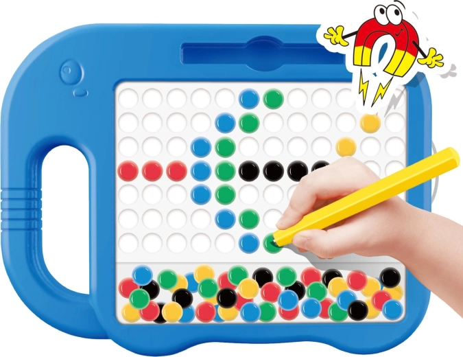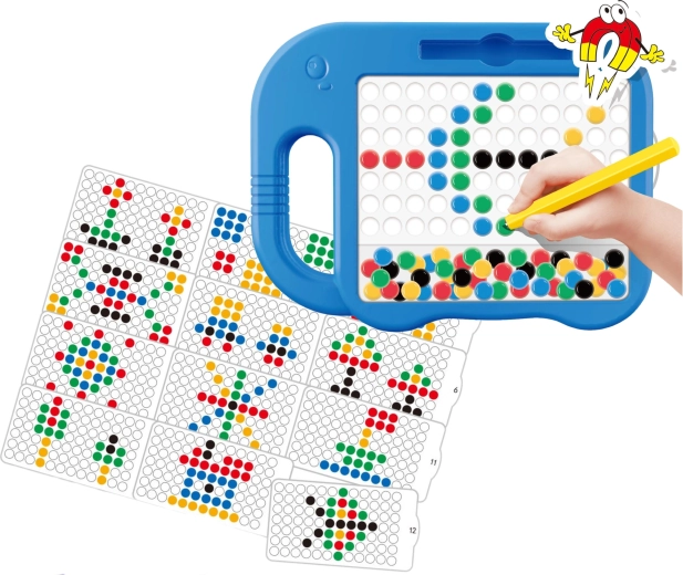 Magnetna tabla WOOPIE MagPad je odlično izobraževalno orodje, ki igro spremeni v učenje. Otroci z magnetnim pisalom privlačijo gumbke v odprtinice in sestavljajo slike po predlogah ali lastni domišljiji. Zaradi trpežne izdelave in enostavne uporabe je tabla primerna za vsakodnevno igro doma in v skupinah.