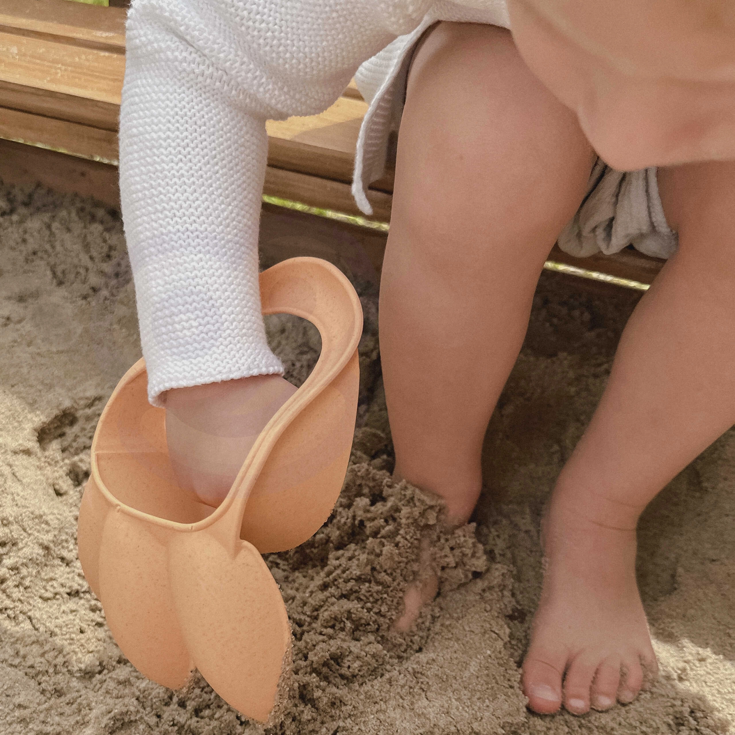 Izdelek je izdelan iz organskega, biološko razgradljivega materiala, ki ga je mogoče kompostirati, zato je odlična izbira za družine, ki razmišljajo trajnostno. Pastelna barva in gladke linije igri dodajo stil in varnost.