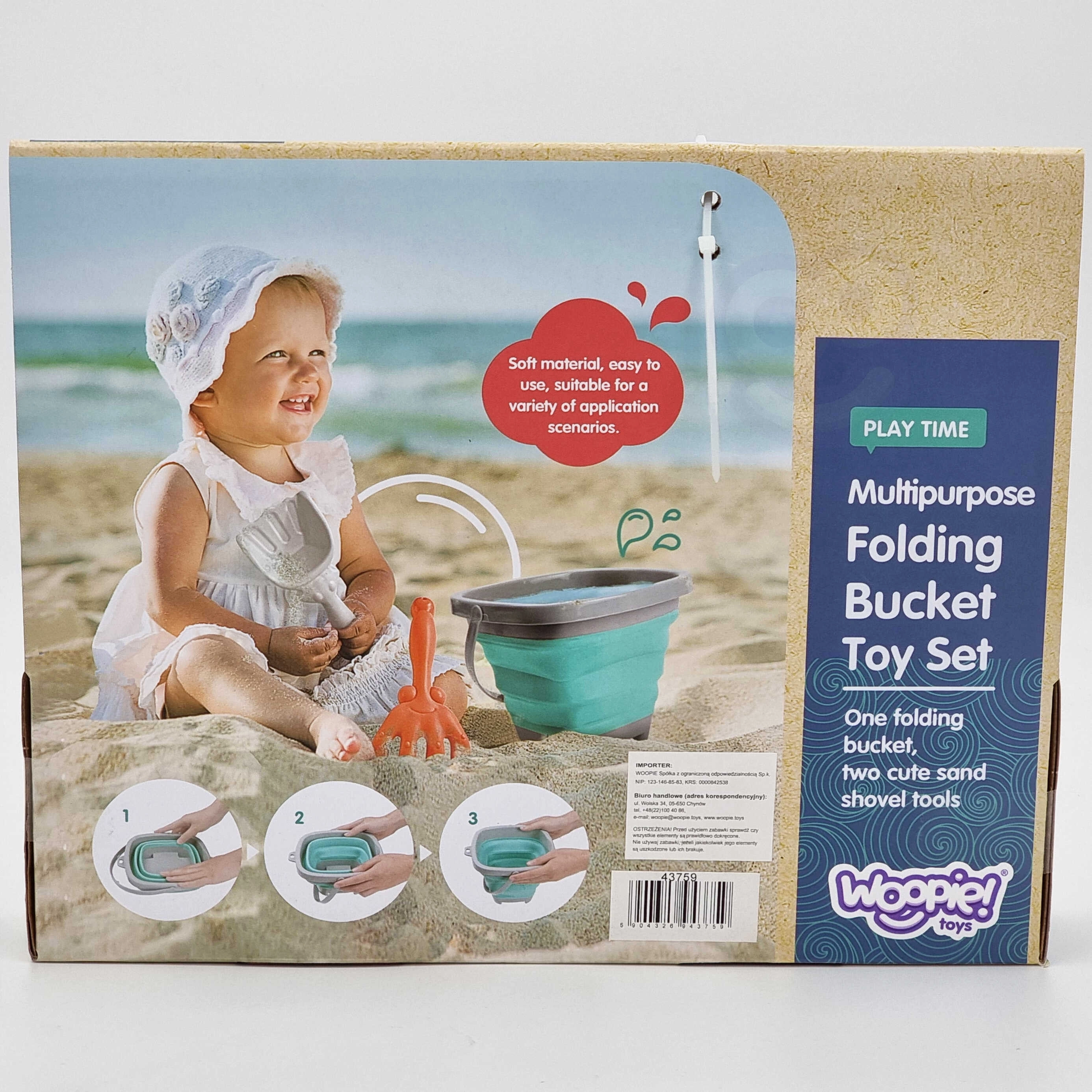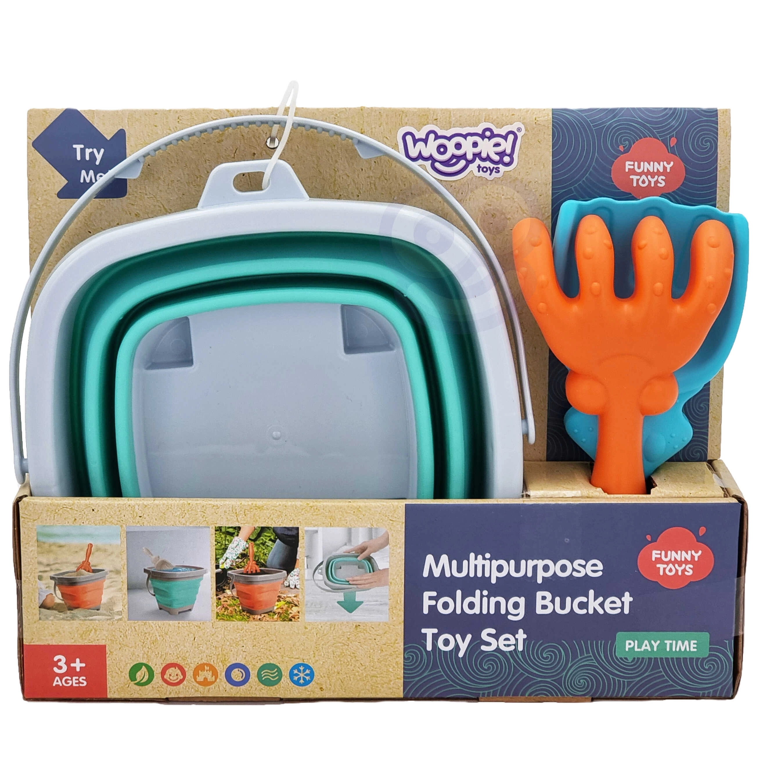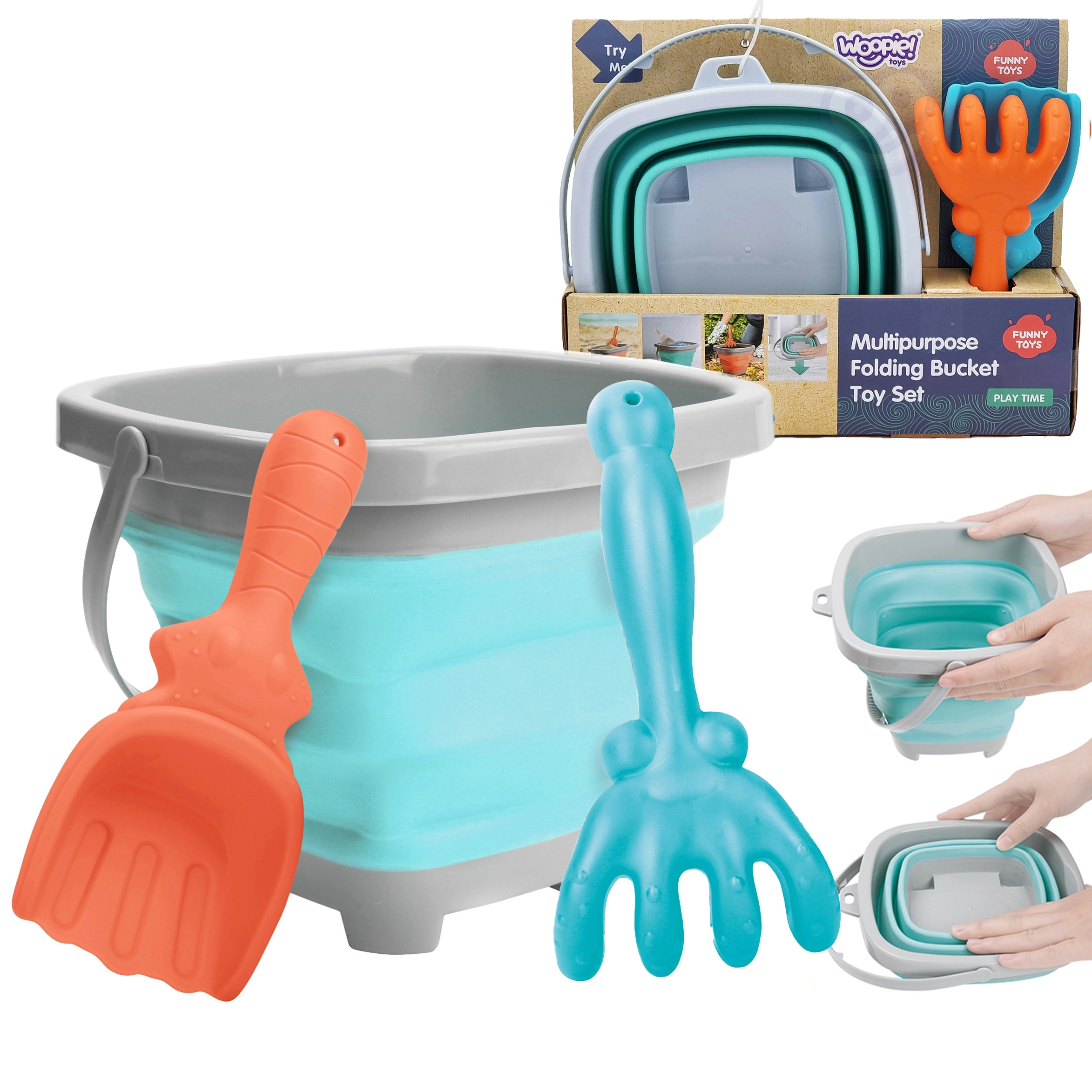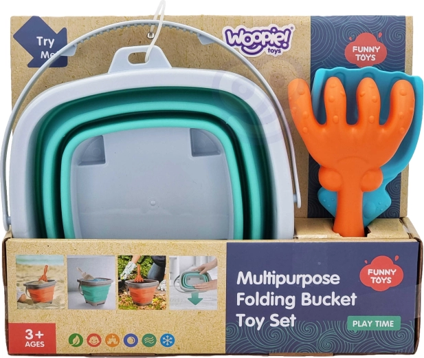 Zložljivo vedro WOOPIE z dodatki je odličen spremljevalec za počitnice in vsakodnevno igro. Harmonikasto zložene silikonske stene omogočajo, da vedro hitro zložite v ploščato obliko, zato se prilega v otroški nahrbtnik, voziček ali plažno torbo. Set vključuje tudi praktično lopatko in grabljice za gradnjo gradov in oblikovanje peska.