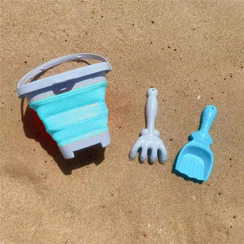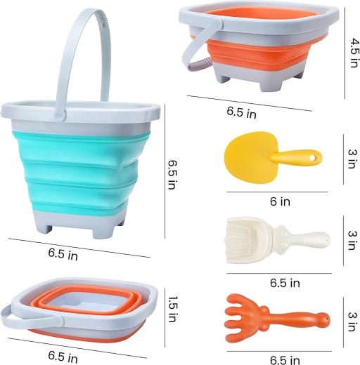 Lahek in praktičen set za pesek za otroke od 3 let: zložljivo silikonsko vedro 5 l z lopatko in grabljicami. Zahvaljujoč harmonikastemu zlaganju zavzame minimalno prostora, je lahko prenosljivo, idealno za plažo, peskovnik in vrt ter udobno za shranjevanje. Plastičen rob, dno in ročaj zagotavljajo stabilnost, silikonske stene pa vzdržljivost in fleksibilnost.
