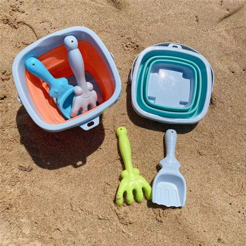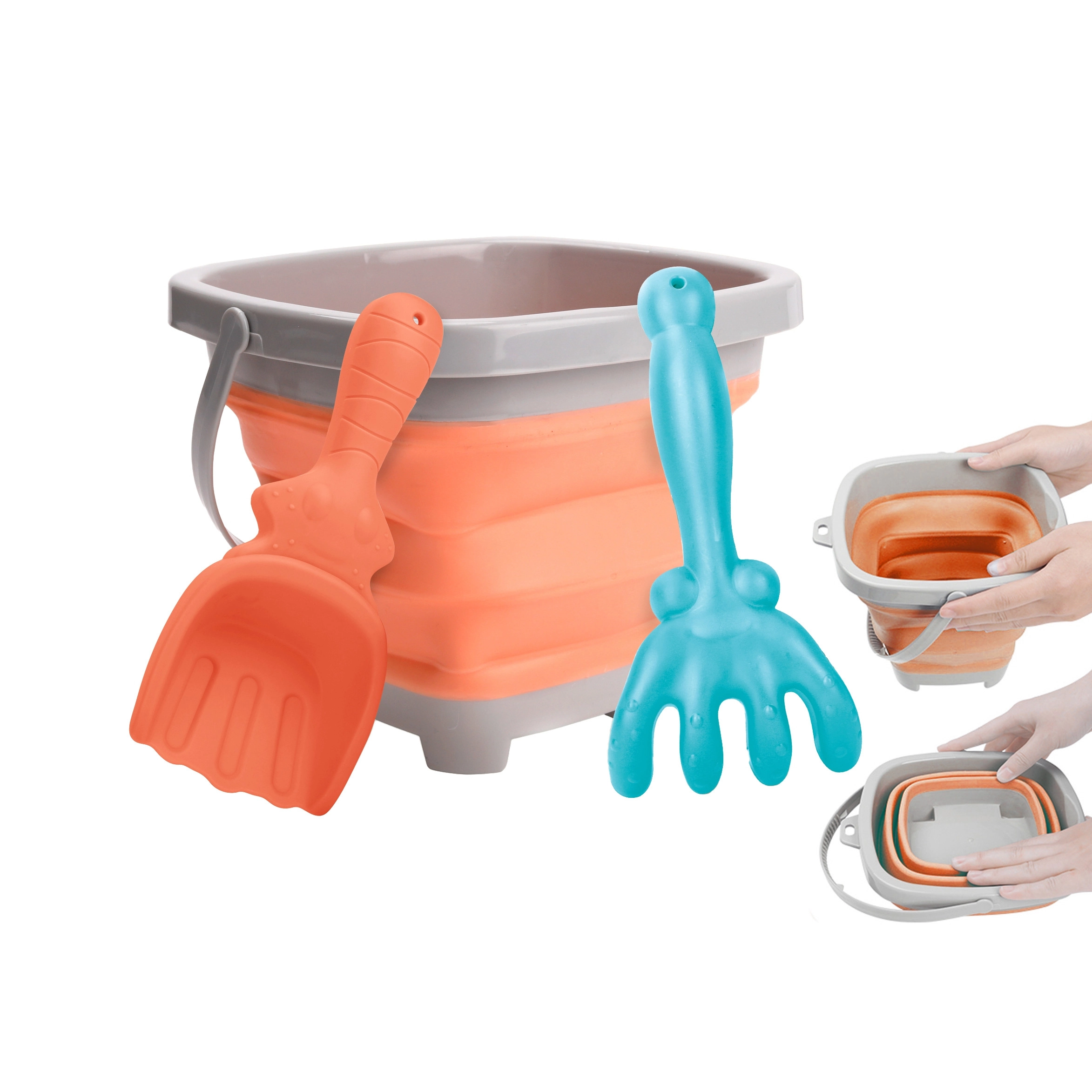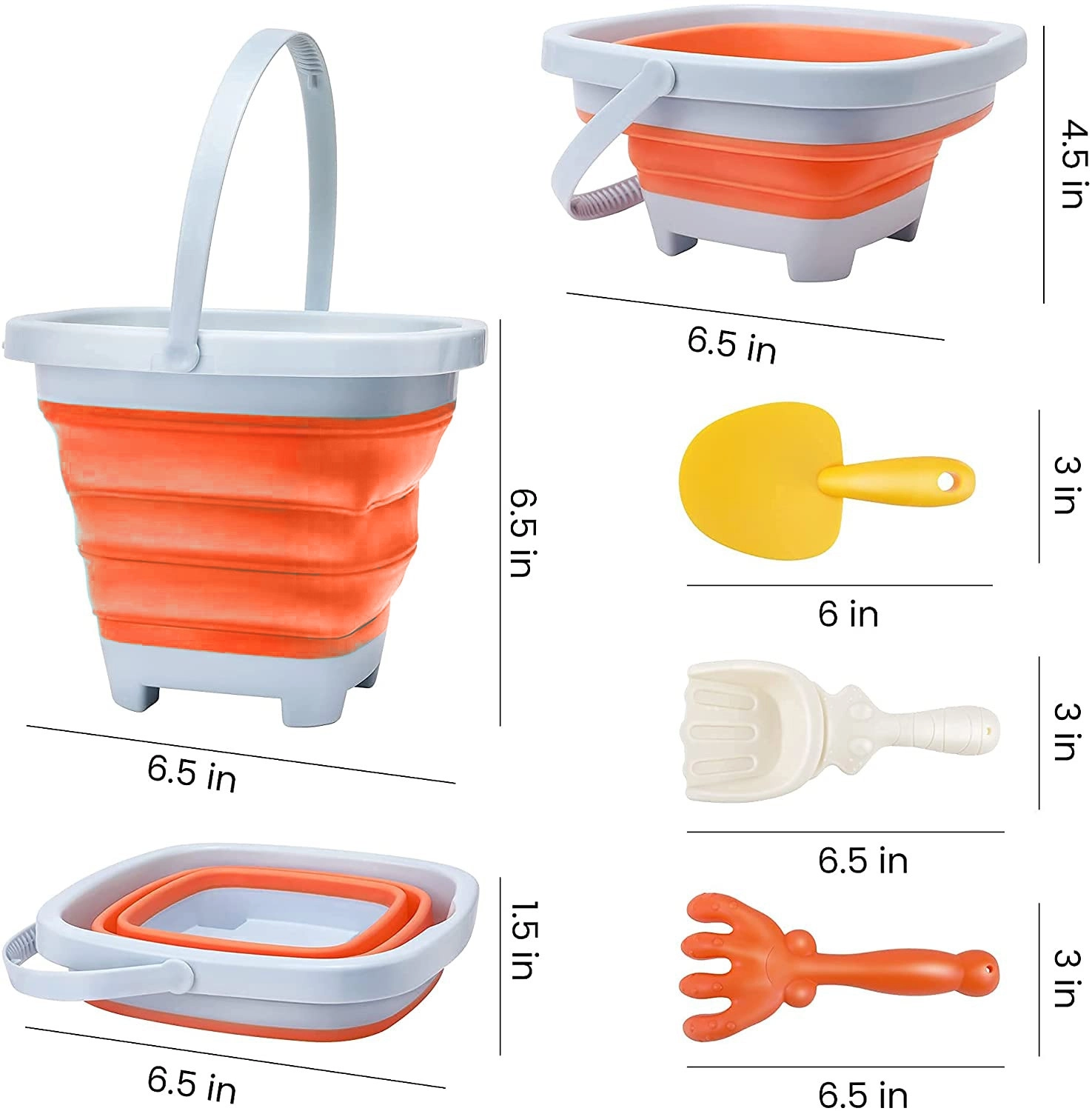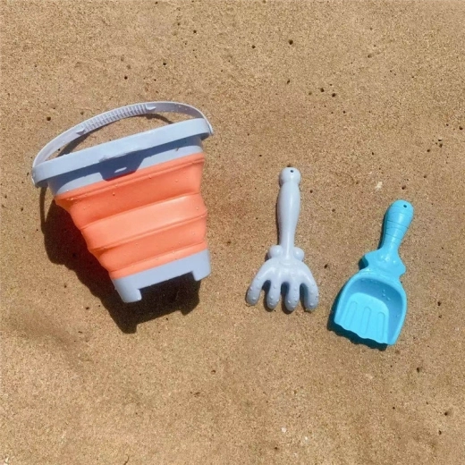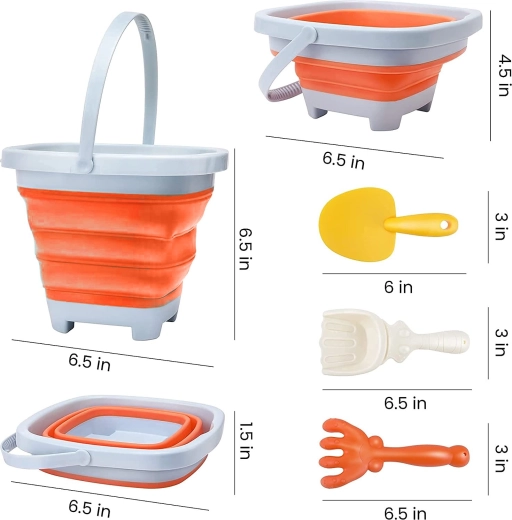 V paketu dobite vedro, lopatko in grabljice – vse potrebno za peščene gradove, prenašanje vode in ustvarjalno igro na plaži.