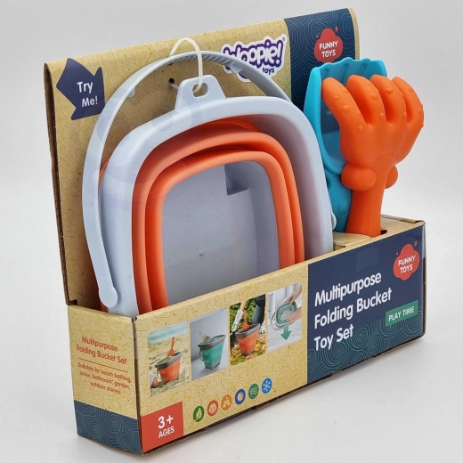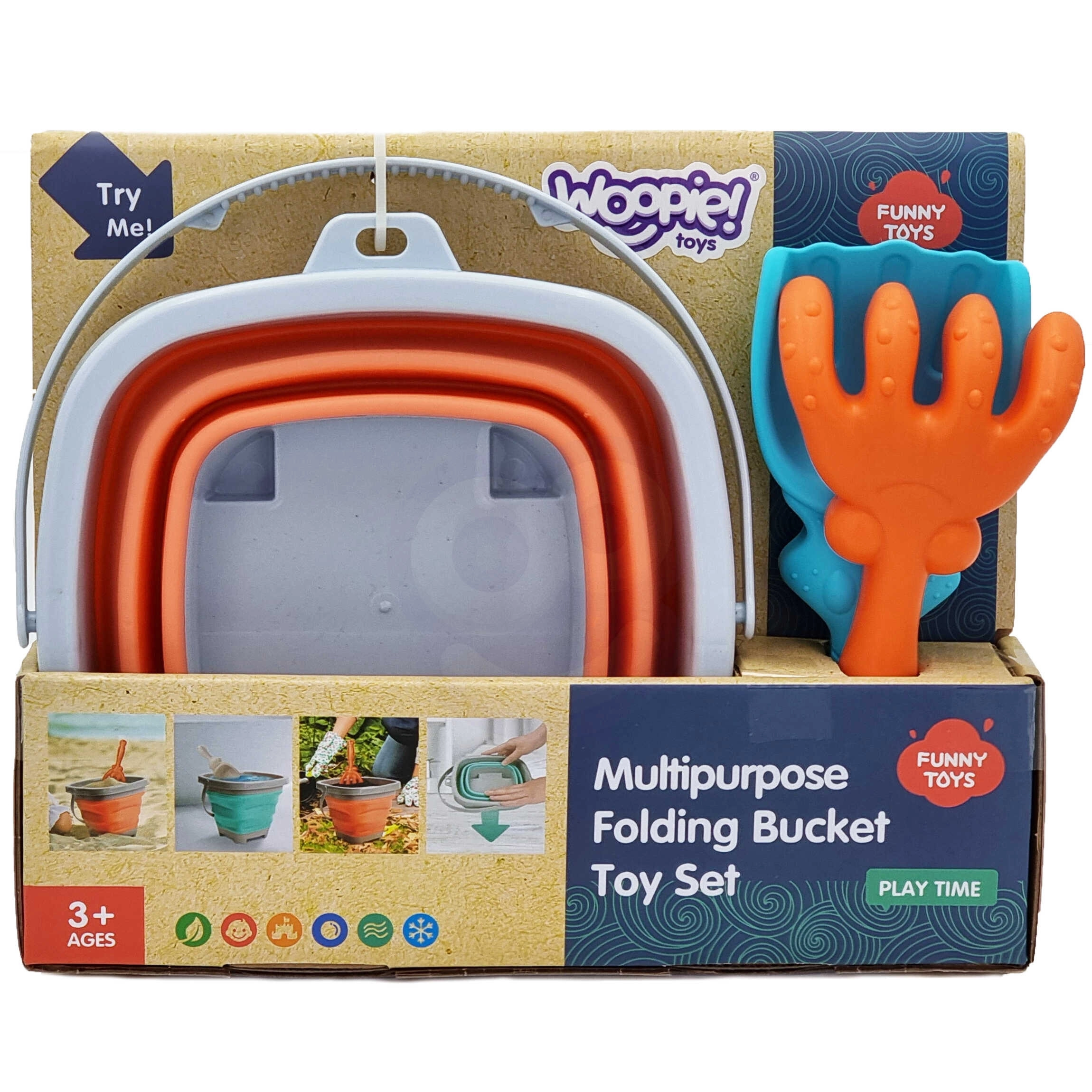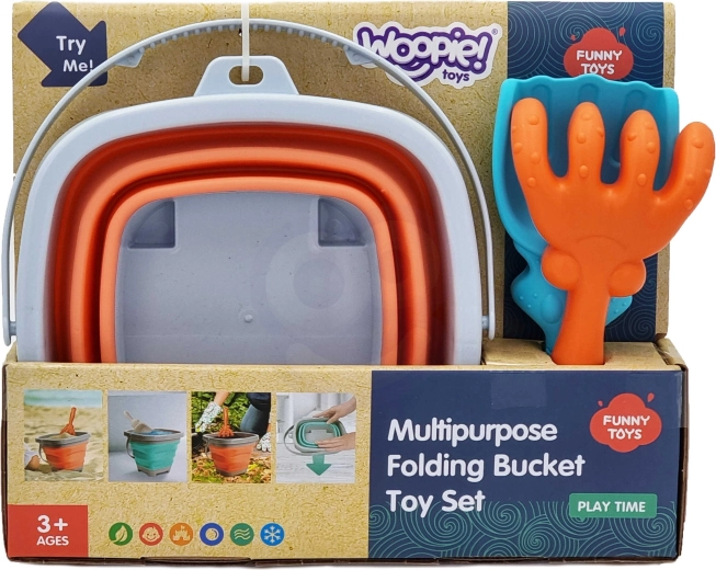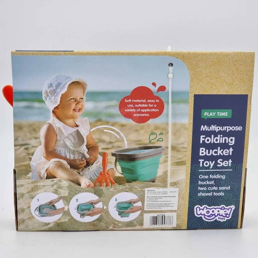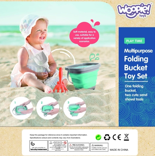 Zložljivo vedro WOOPIE je zasnovano za udobno igro na prostem – v peskovniku, na plaži in na vrtu. Trden plastičen rob, dno in ročaj zagotavljajo stabilnost, medtem ko se močne silikonske stene zložijo v praktično »harmoniko« za kompaktno shranjevanje in hitro prenašanje.