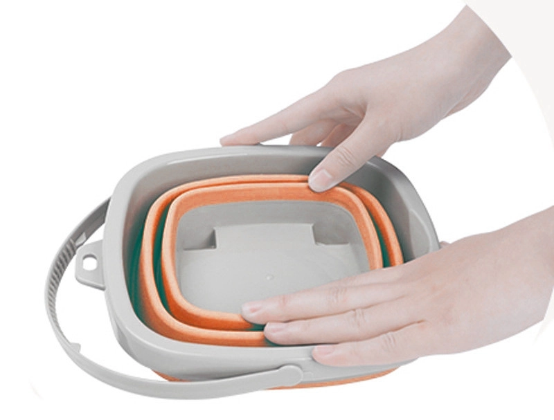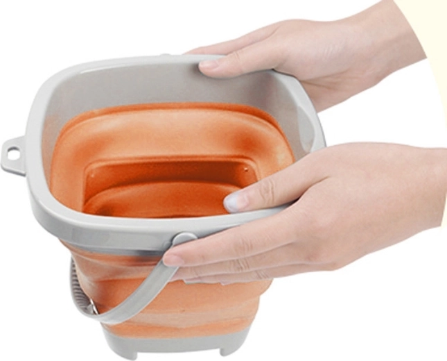Silikonske stene se zložijo v raven obliko – vedro po zlaganju meri le 4 cm v višino. Idealno za potovanja in majhne shranjevalne prostore.