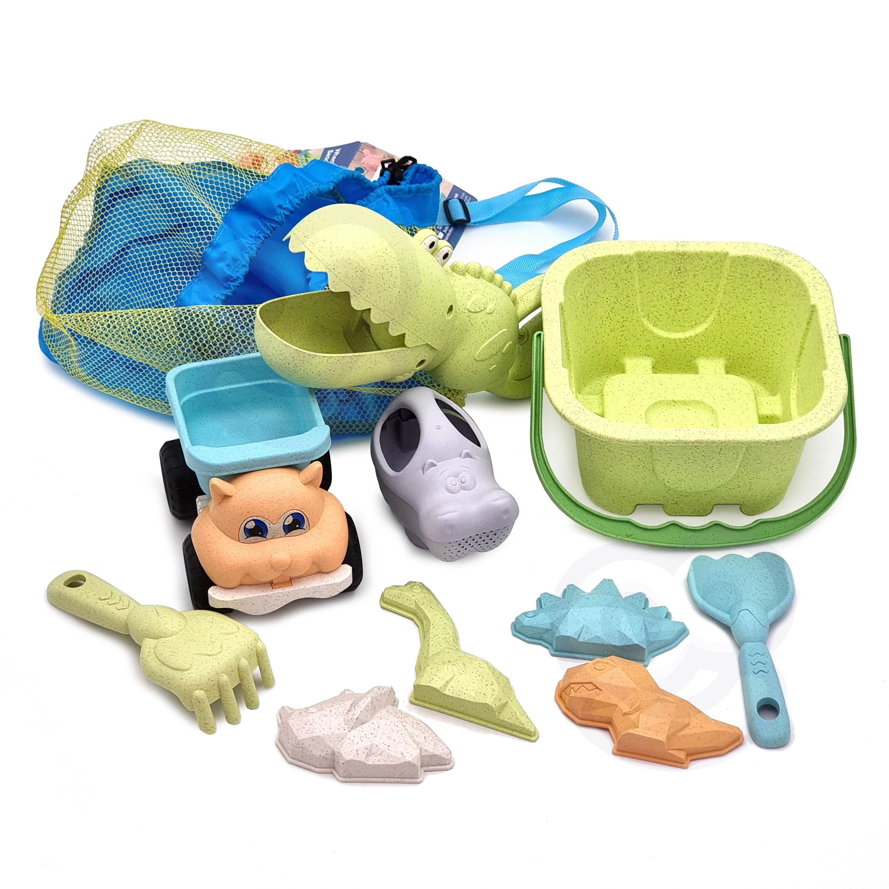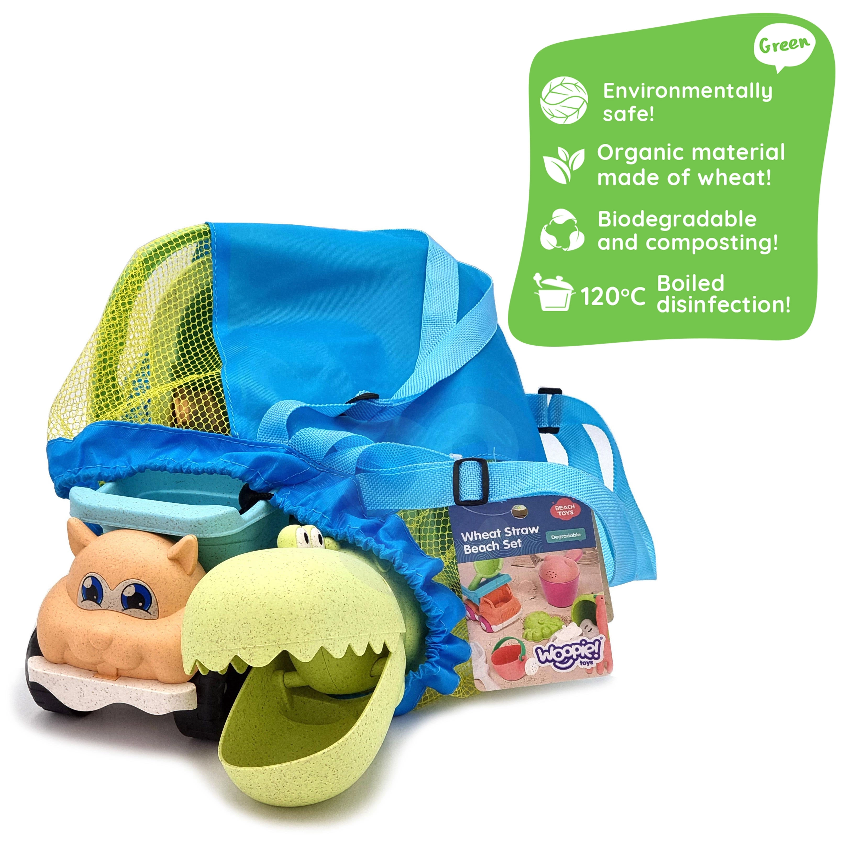 Odkrijte trajnostno zabavo s kompletom WOOPIE GREEN v modernih pastelnih barvah. Organski material na osnovi pšeničnih vlaken je biološko razgradljiv in kompostabilen, zato bodo otroci uživali v ustvarjanju, vi pa v dobrem občutku skrbi za naravo. Zračen mrežast nahrbtnik olajša prenašanje in sušenje igrač po igri ob vodi.