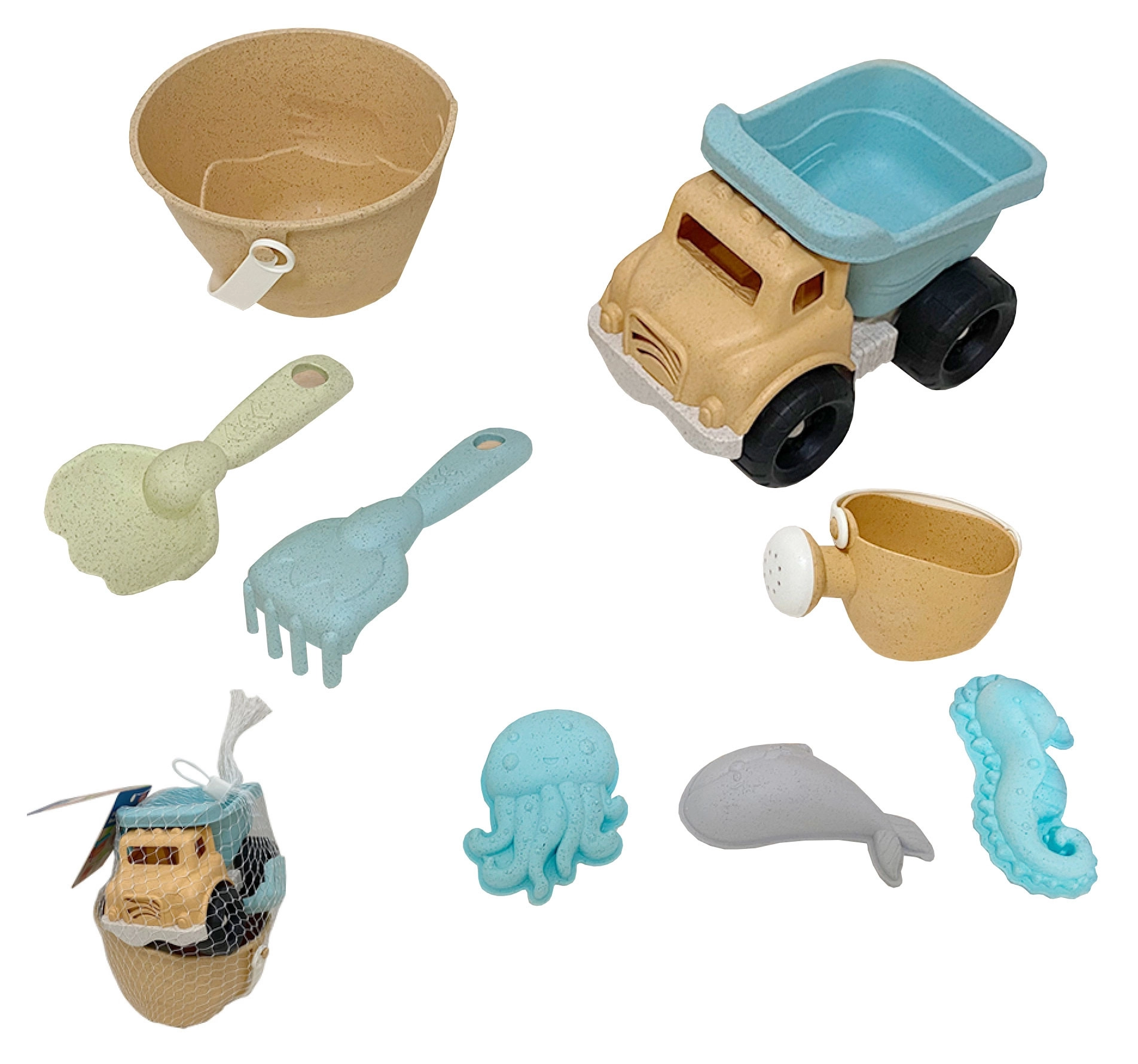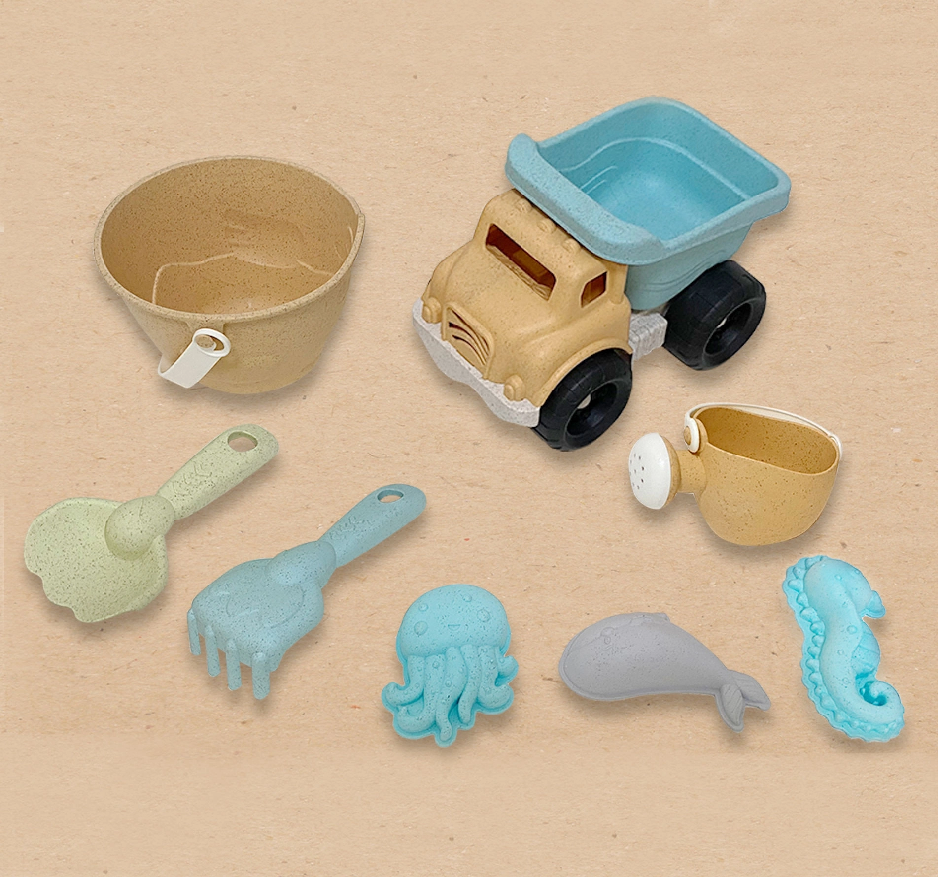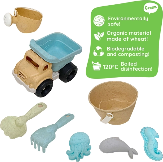 Set za pesek WOOPIE GREEN prinaša otrokom ure ustvarjalne igre, staršem pa občutek odgovorne izbire. Izdelek je izdelan iz organskega, okolju prijaznega materiala na osnovi pšeničnih vlaken, ki se v tleh naravno razkraja in je kompostljiv. Pastelne barve in ergonomske oblike spodbujajo prijetno in varno igro.