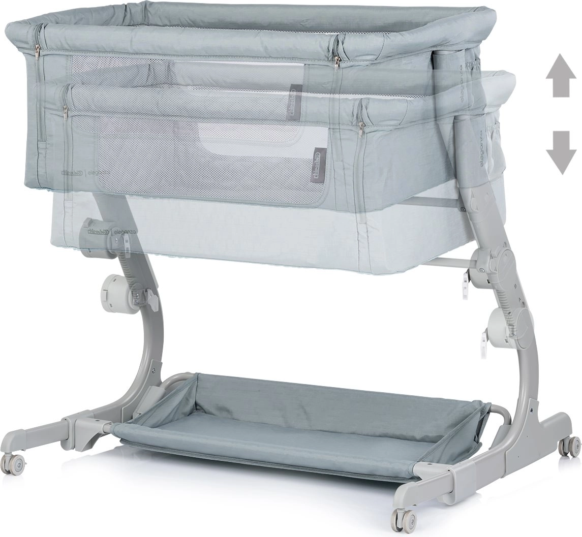 CHIPOLINO Eleganza 2v1 služi kot samostojna posteljica in kot varna priklopna posteljica k postelji staršev. Lahka, a stabilna kovinska konstrukcija v kombinaciji z mrežastimi stranicami zagotavlja odlično kroženje zraka in stalen nadzor nad dojenčkom. S 3 nastavljivimi višinami preprosto poravnate ležišče z nivojem vaše postelje.