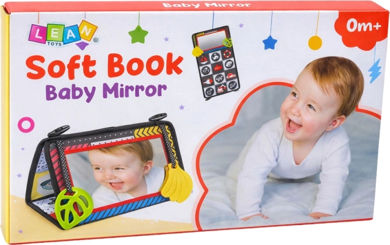 Kontrastna senzorična podloga z ogledalcem podpira razvoj dojenčka že od prvih mesecev. Visok kontrast črne, bele in rdeče spodbuja vid, varno ogledalce motivira k opazovanju lastnega odseva, mehke teksture in šumeči elementi pa razvijajo tip in koordinacijo roka–oko. Idealno za tummy time, prve poskuse dvigovanja glavice ter mirne in zabavne trenutke doma ali na poti.