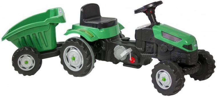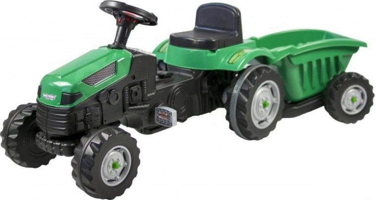 Traktor je izdelan iz kakovostnih, trpežnih in zdravstveno neškodljivih materialov, prijaznih do okolja. Verižni pogon zagotavlja gladko in udobno vožnjo, medtem ko tiha kolesa ne motijo niti pri daljši vožnji. Kavelj za vleko omogoča priklop dodatne opreme.