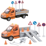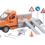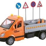 Del pakiranja so prometni stožci, znaki, pregrade in drobno orodje, s katerimi otroci zlahka ustvarijo svoje gradbišče ali zaporo ceste. Robustna plastična izdelava je varna in primerna za vsakodnevno igro.