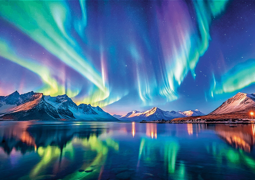 Elegantna sestavljanka z motivom polarnega sija je idealna izbira za ljubitelje narave, potovanj in nočnega neba. Zaradi kakovostnega tiska in natančnega izreza se kosi popolno prilegajo, končna slika pa deluje kot dekorativni plakat. Priložen plakat v merilu olajša orientacijo na zahtevnejših površinah in pospeši sestavljanje.