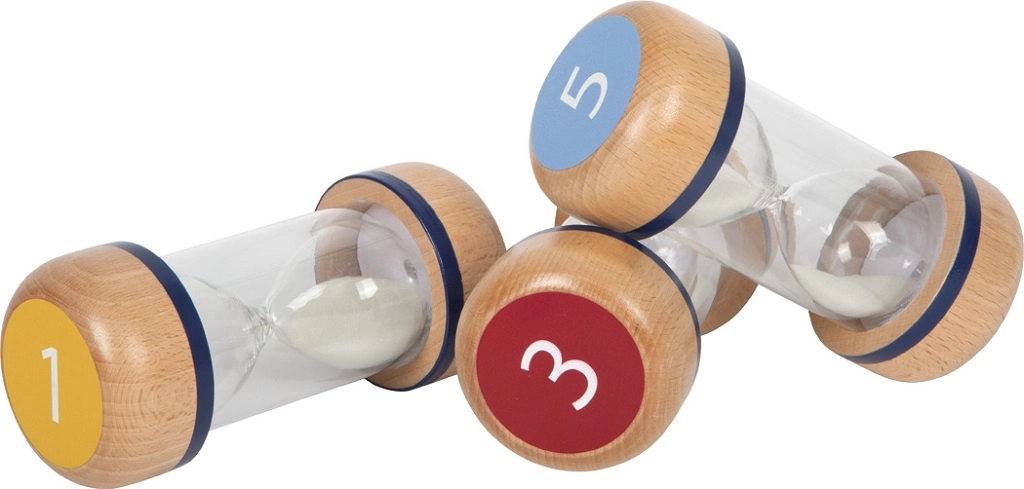 Odlično se podajo za dom, vrtec in šolo – za rutine (ščetkanje zob), bralne trenutke, igre in kratke delovne aktivnosti. Komplet razvija občutek za čas, podpira rednost in pomaga otrokom bolje načrtovati. Zaradi višine približno 14 cm dobro sede v otroške roke.