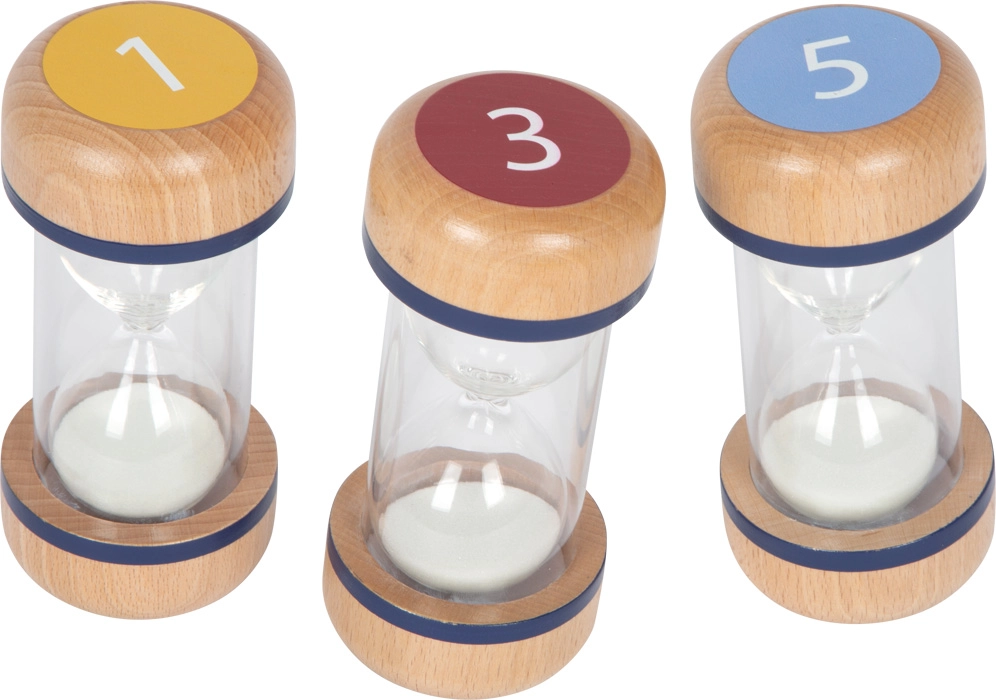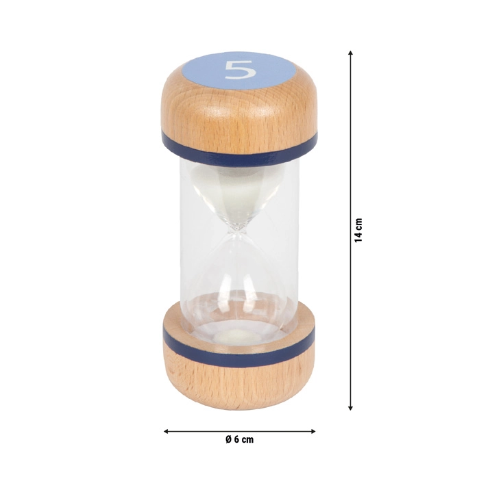 Podprite zbranost in samostojno organizacijo otrok s praktičnim kompletom peščenih ur. Barvno razlikovani časovni intervali 1, 3 in 5 minut omogočajo preprosto nastavitev in vizualno spremljanje kratkih nalog in odmorov. Prosojno ohišje z belim peskom zagotavlja jasno vidnost poteka, medtem ko robustni leseni konci iz bukovega lesa ponujajo stabilnost in varno držanje.