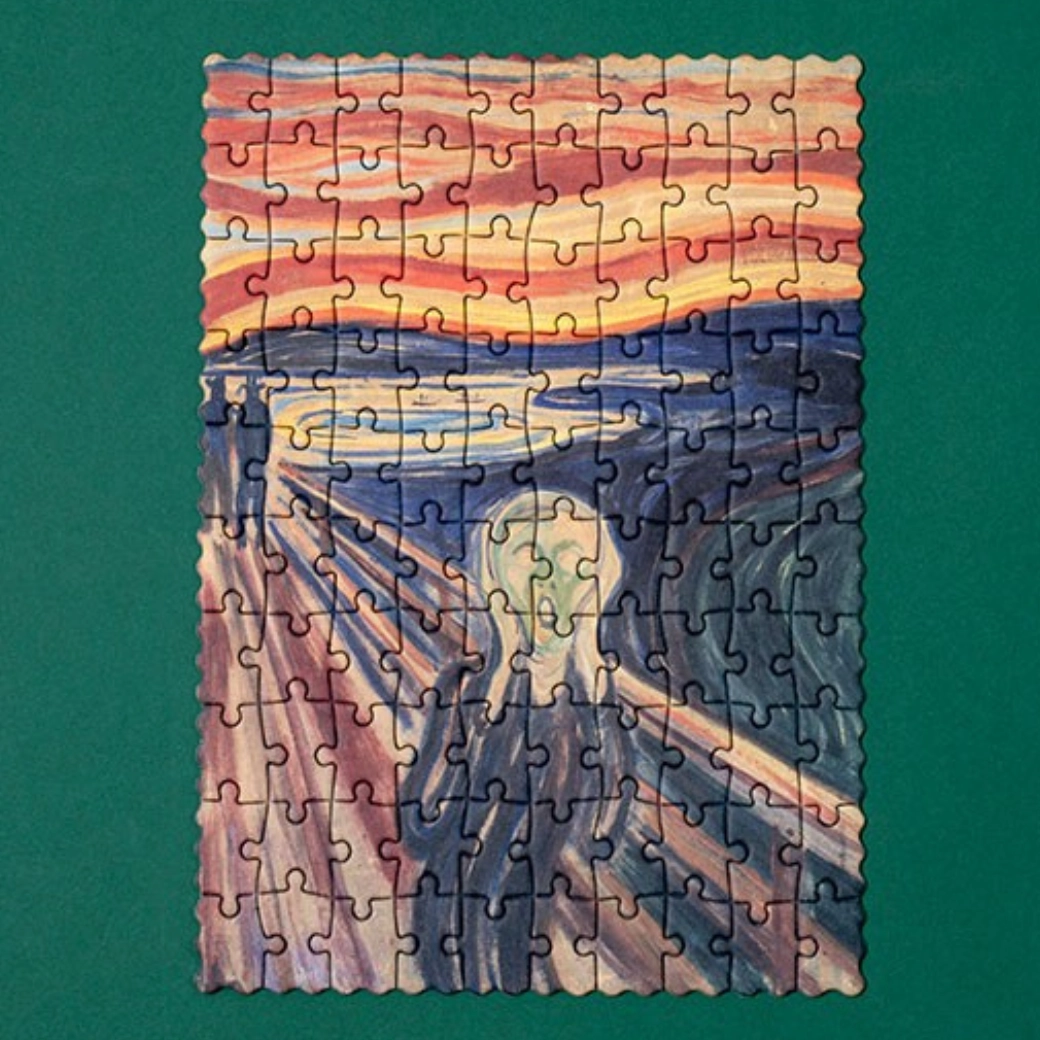 Odkrijte moč slavne slike v žepni velikosti. Ti puzzle z motivom Krika ponujajo diskretno, a intenzivno zabavo – popolni za trenutke, ko želite izklopiti misli in se potopiti v tiho, zbrano igro.