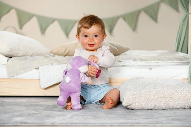 Spoznajte nežnega Zajčka iz linije BABY born za dojenčke. Mehko plišasto telesce, prisrčen obrazek in udobna velikost 26 cm ga naredijo za idealnega prijatelja za voziček, posteljico in na pot. Punčka je lahka, enostavna za prijem z majhnimi rokami, zaradi možnosti pranja na 30 °C pa jo je preprosto ohranjati čisto.