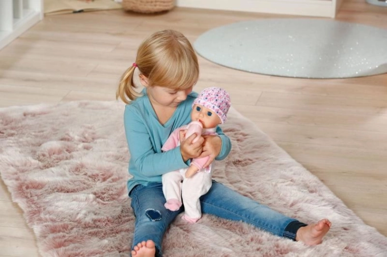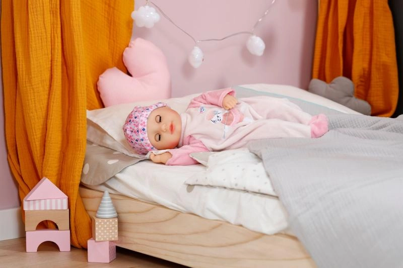 Vključeni so rožnati pajaci, ujemajoča kapica in steklenička. Oblačila BABY born velikosti 36 cm odlično pristajajo in jih je mogoče enostavno kombinirati.