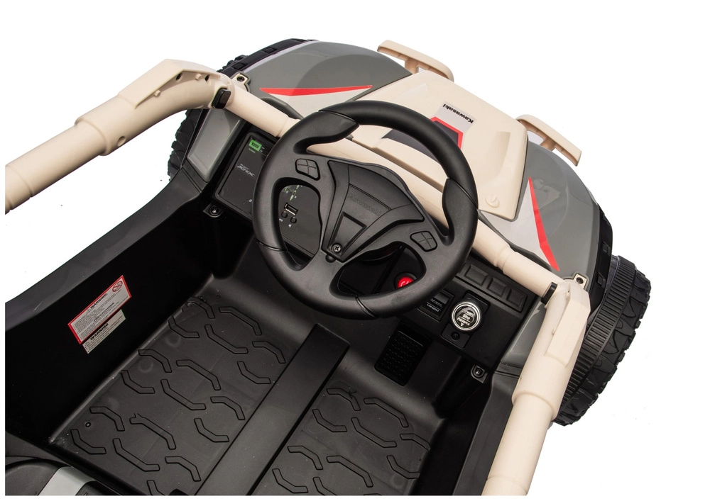 Robusten otroški električni avto, navdihnjen z off‑road buggyjem KAWASAKI KRX, ponuja zmogljiv 24V pogon, dvosedežni sedežni prostor in terenska kolesa z globokim profilom za zabodno vožnjo na prostem. Prisotni so tudi zaščitni okvir, izboljšano vzmetenje in realističen volan z upravljalnimi elementi za varno in pustolovsko igro.