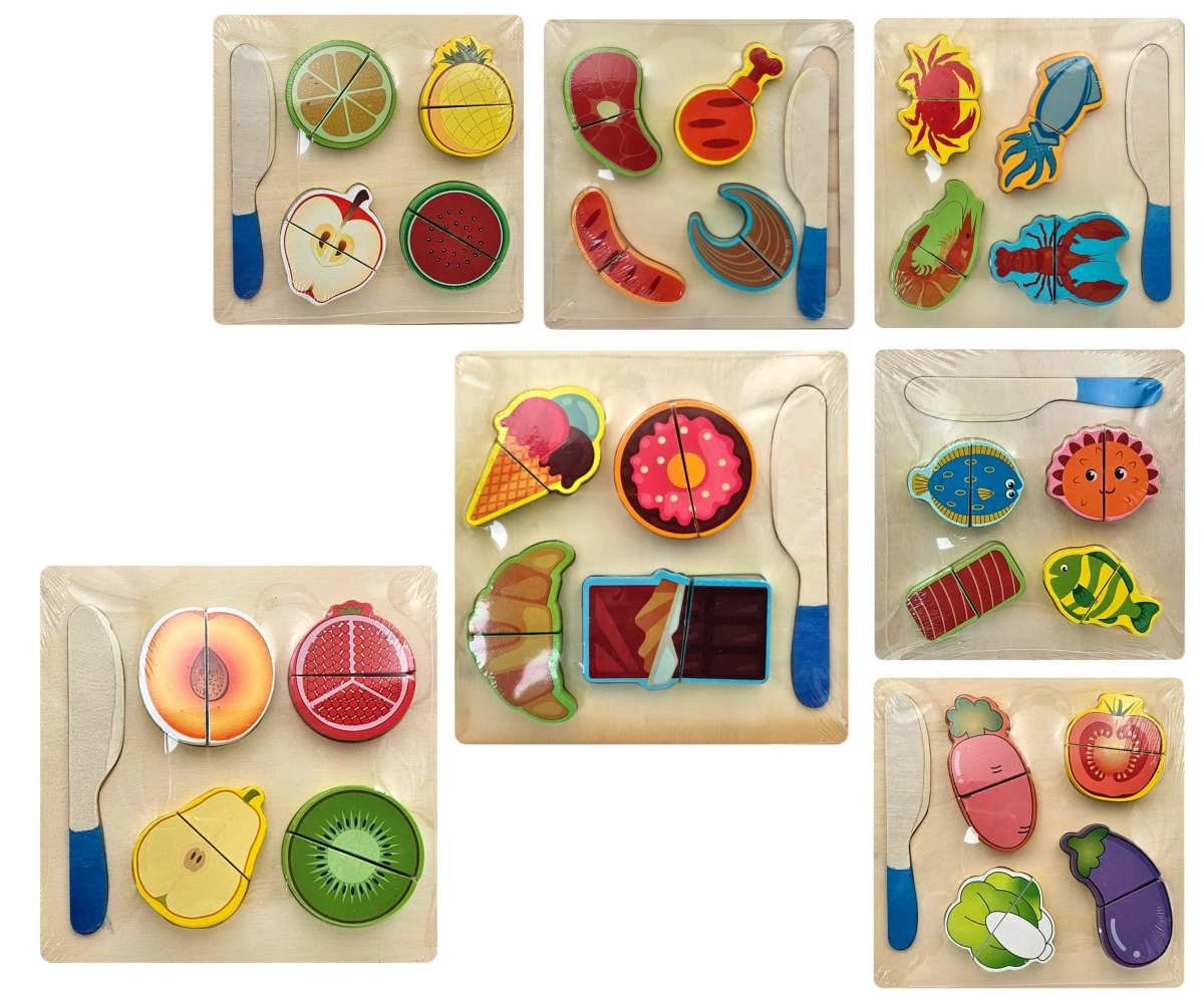Odkrijte ustvarjalno igro z lesenimi živili na ježka, ki jih je mogoče večkrat razdeliti in ponovno spojiti. Otroci pri »rezanju« na varen način trenirajo fino motoriko, koordinacijo oko–roka ter igranje vlog pri kuhanju v otroški kuhinji.