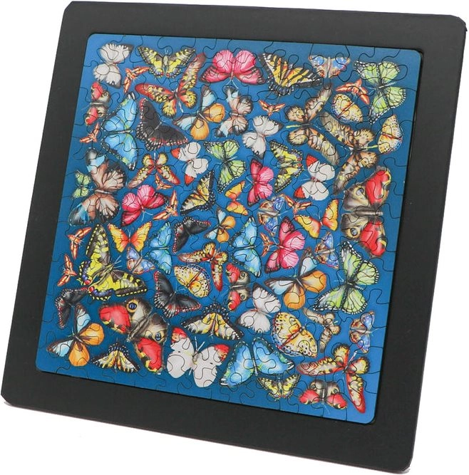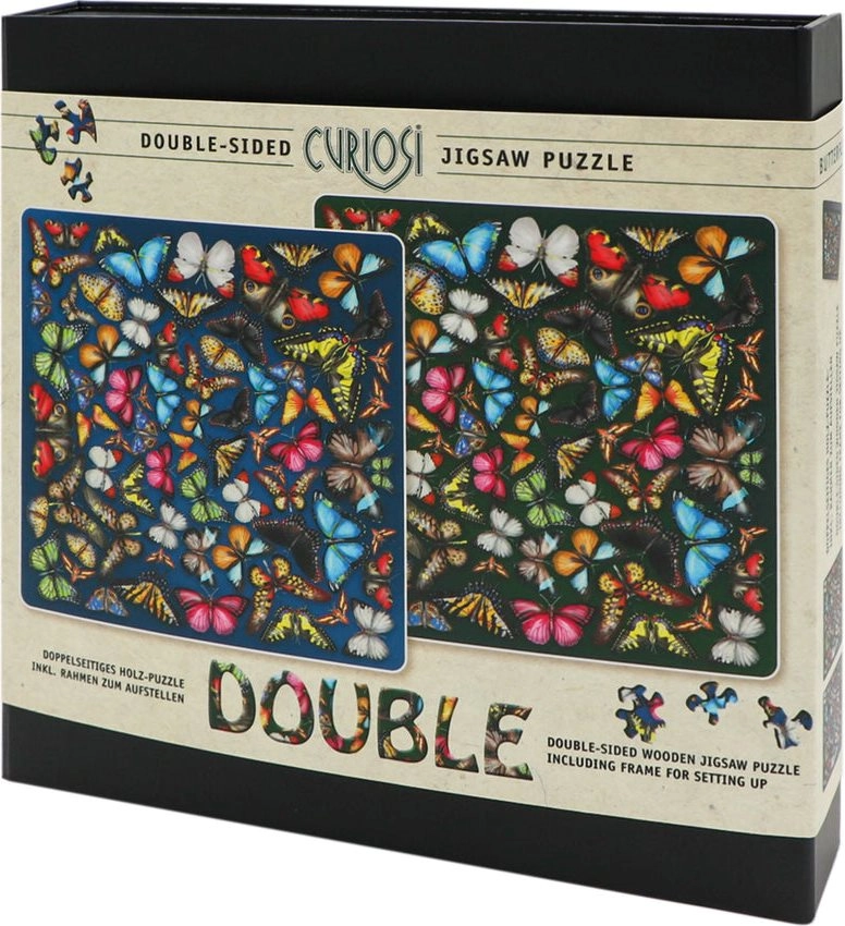 Iščete izvirno sestavljanko, ki bo preizkusila vašo potrpežljivost in hkrati navdušila z dizajnom? Dvostranska lesena sestavljanka Curiosi Double z motivom metuljev prinaša dvojni izziv: na vsaki strani koščka je drugačen motiv. Zahvaljujoč nenavadnim oblikam koščkov je sestavljanje zabavno in vizualno privlačno.