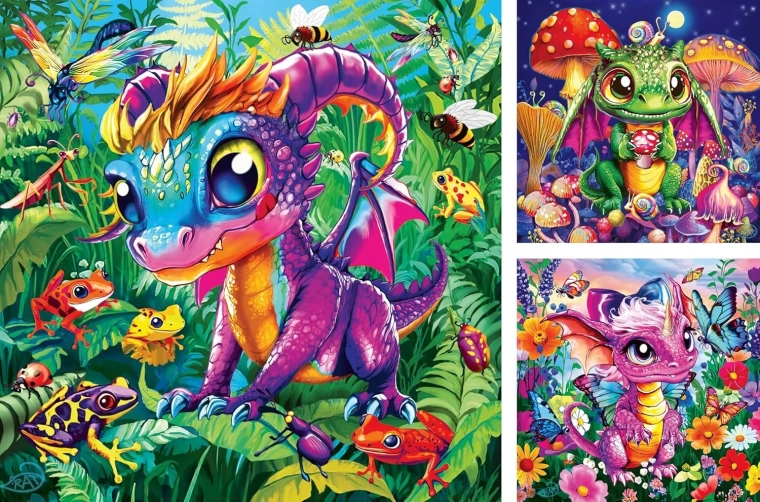 Odkrijte čar sestavljank z otroško sestavljanko RAVENSBURGER – komplet treh slik po 49 koščkov z motivom ljubkih zmajčkov v naravi. Vsaka sestavljanka meri približno 21 × 21 cm in je izdelana iz kakovostnega, trpežnega kartona za dolgo življenjsko dobo. Idealno za razvoj fine motorike, potrpežljivosti in logičnega razmišljanja. 3 slike v enem pakiranju, 49 koščkov na sestavljanko, vrhunska kakovost RAVENSBURGER.