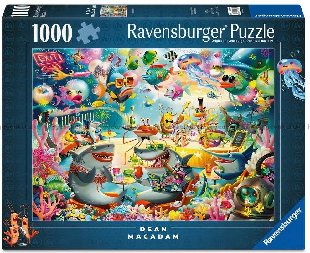 Uživajte v urah mirne zabave z motivom sproščenosti pod gladino. Znamka RAVENSBURGER je znana po vrhunski kakovosti tiska, trpežnem papirju in tehnologiji Softclick za natančno prileganje koščkov brez cefranja robov.