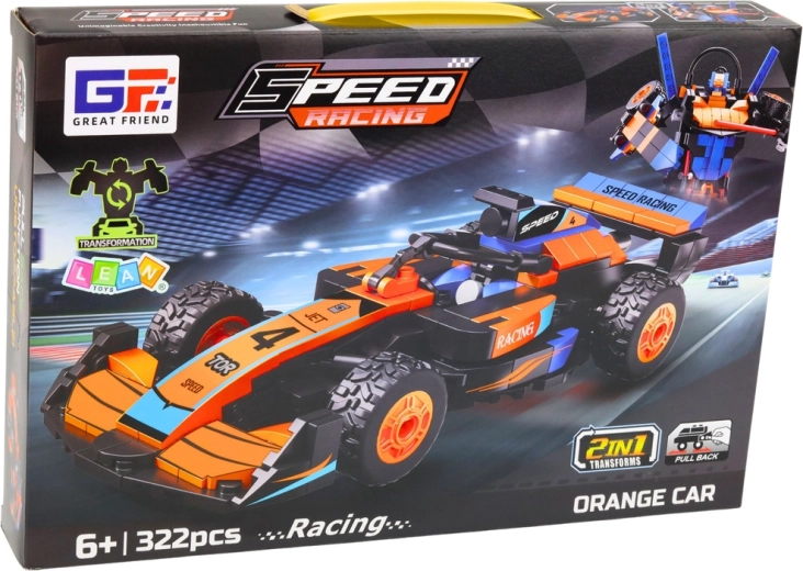 Konstrukcijski set 2v1 oranžni dirkalni avto in robot, 322 kosov
