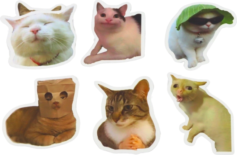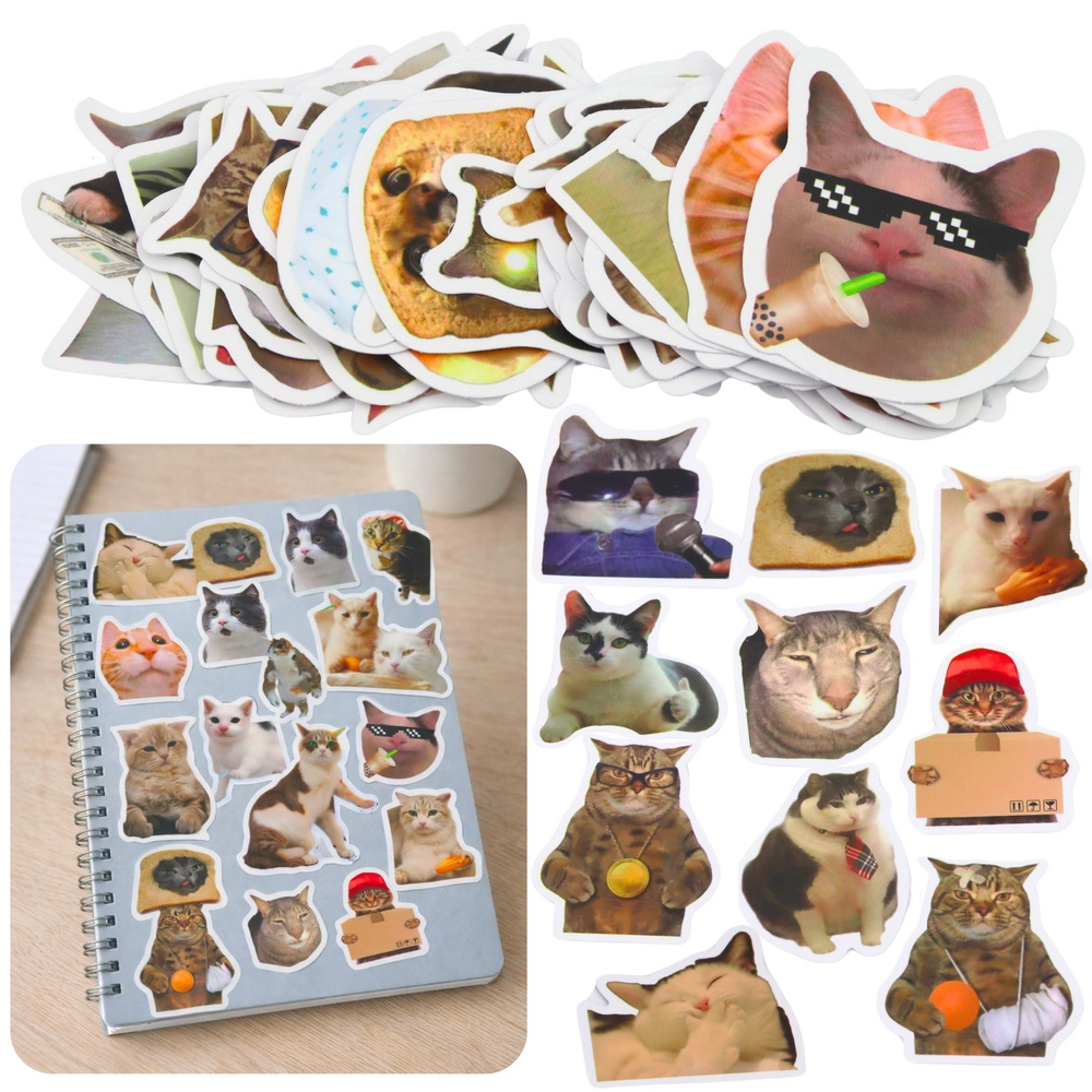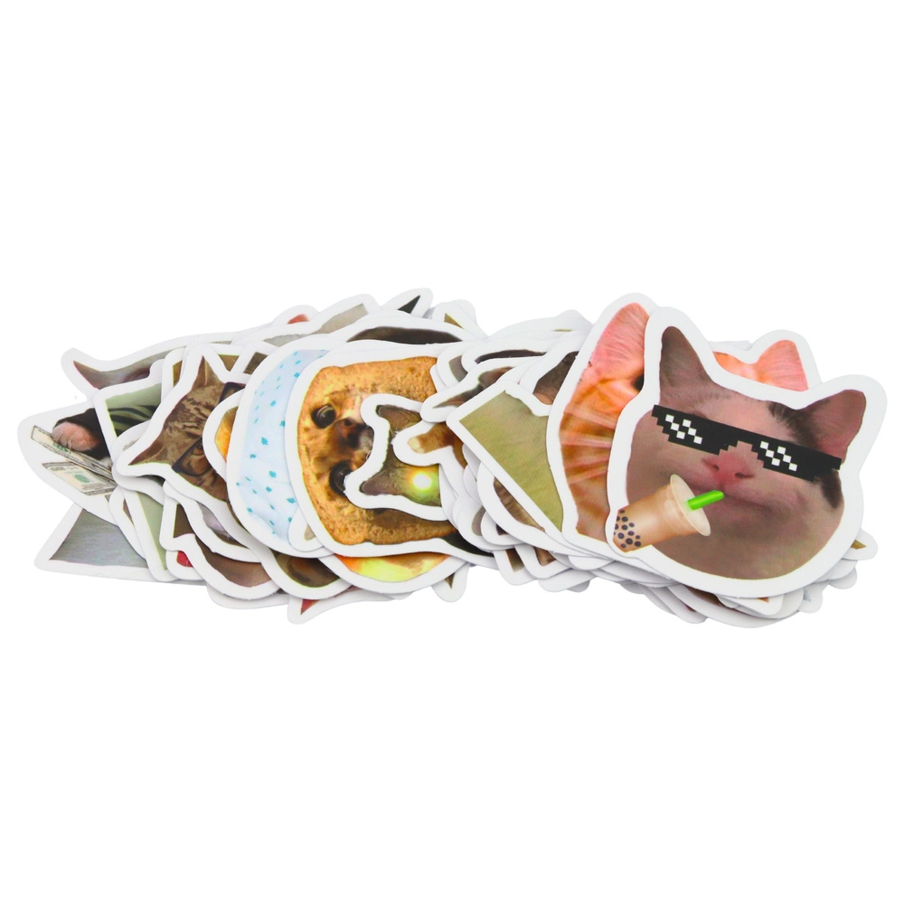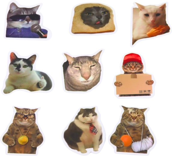 Kar 50 različnih dizajnov mačjih memov v enem paketu – kombinirajte, lepite, plastite in ustvarjajte brez omejitev.