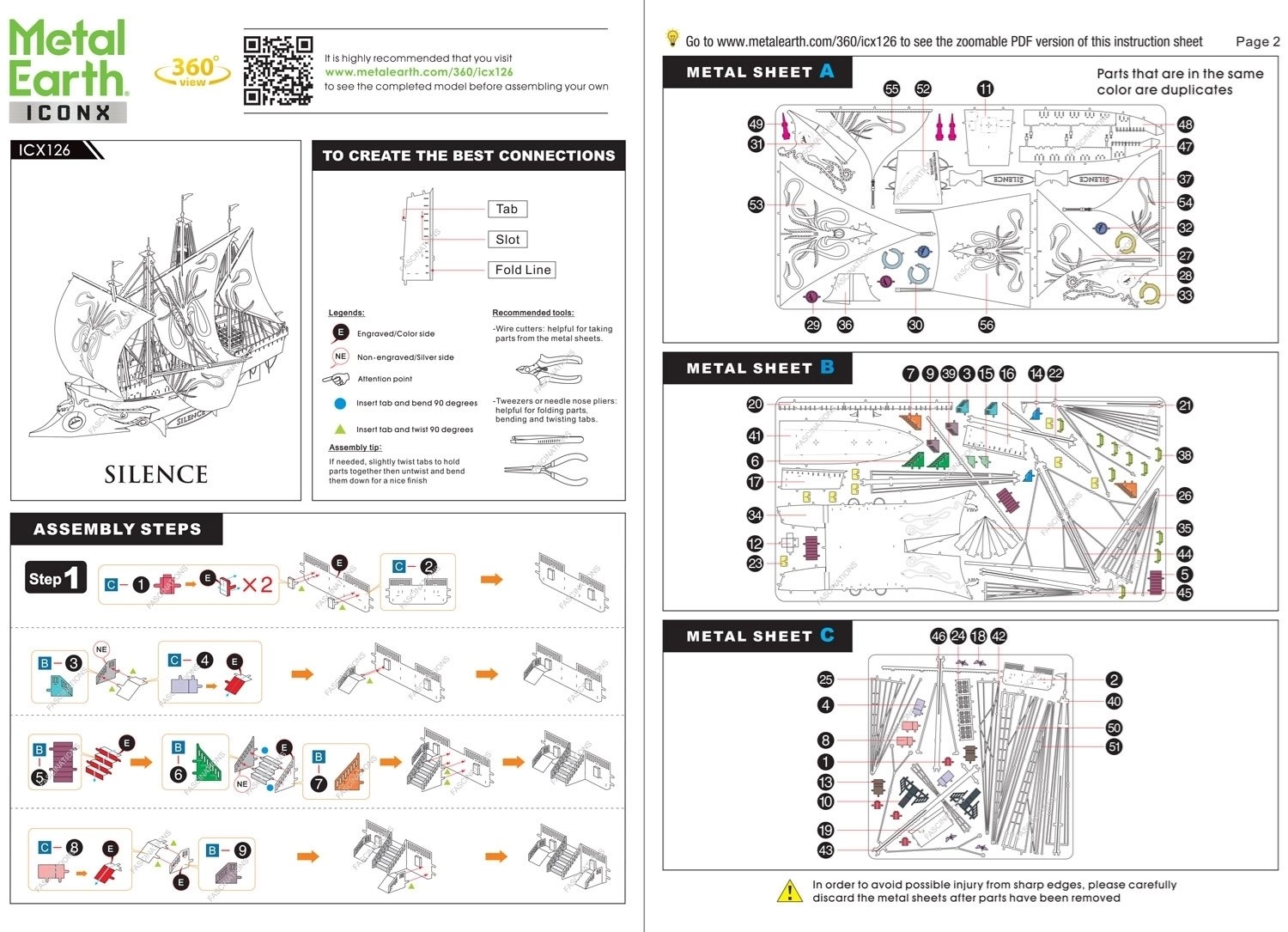 - 2 velika jeklena lista, 1 majhen jekleni list, navodila