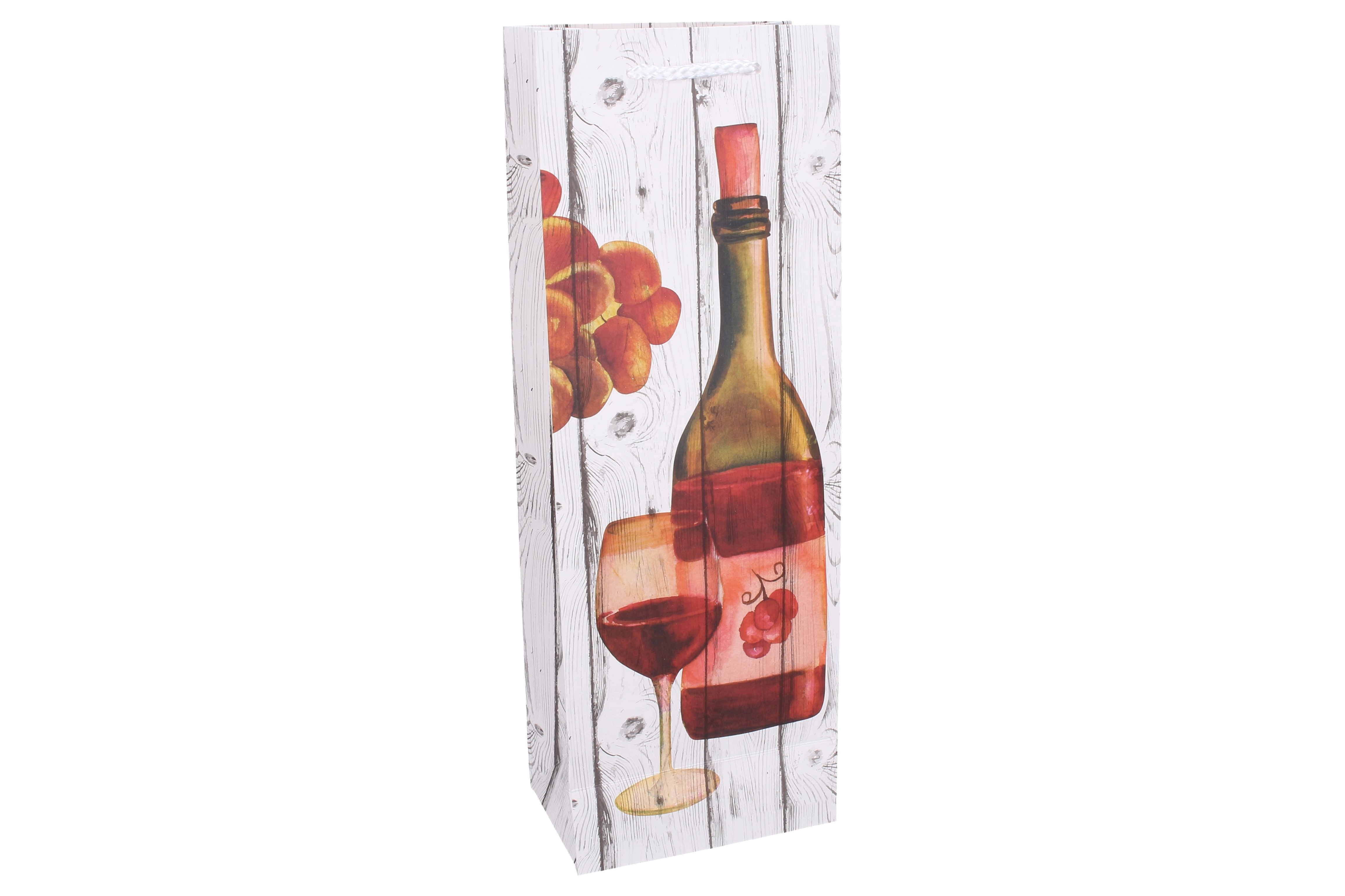 Ta celoletna darilna vrečka za steklenico z merami 36 × 12,5 × 8,5 cm je zasnovana tako, da varno sprejme standardno steklenico vina ali penine, hkrati pa deluje estetsko. Kakovosten papir, trdno dno in stranski pregib zagotavljajo stabilnost, medtem ko dekor z vinsko tematiko poudari slovesni značaj darila.