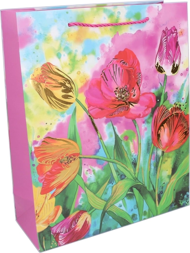 Izbirate lahko med štirimi privlačnimi motivi, vključno s sončnicami in tulipani – tako zlahka uskladite embalažo s priložnostjo in obdarovancem.