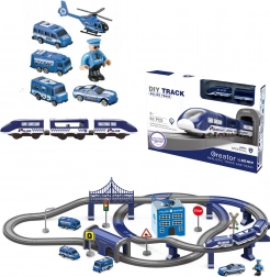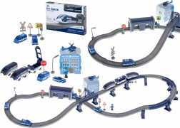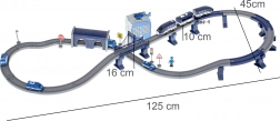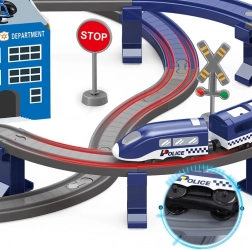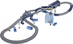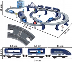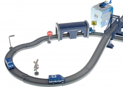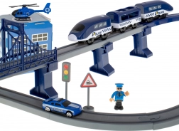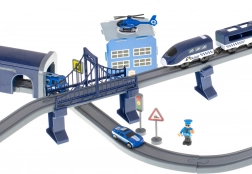 Ta podrobno izdelana policijska vlakovna proga združuje priljubljene otroške svetove – vlake, avtomobile, helikopterje in policijo. Zahvaljujoč bogatemu naboru delov lahko zgradite do 6 različnih različic prog, vključno z dvonivojskim vodenjem, mostom in tunelom. Magnetne spojke vagonov olajšajo rokovanje, lokomotiva s pogonom pa zagotavlja gladko vožnjo.