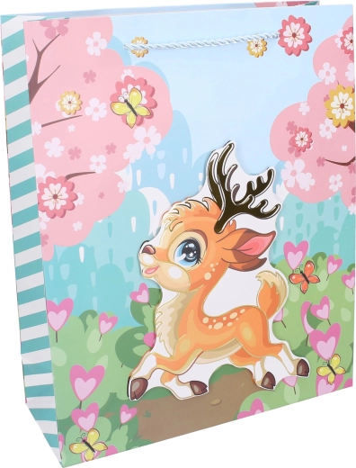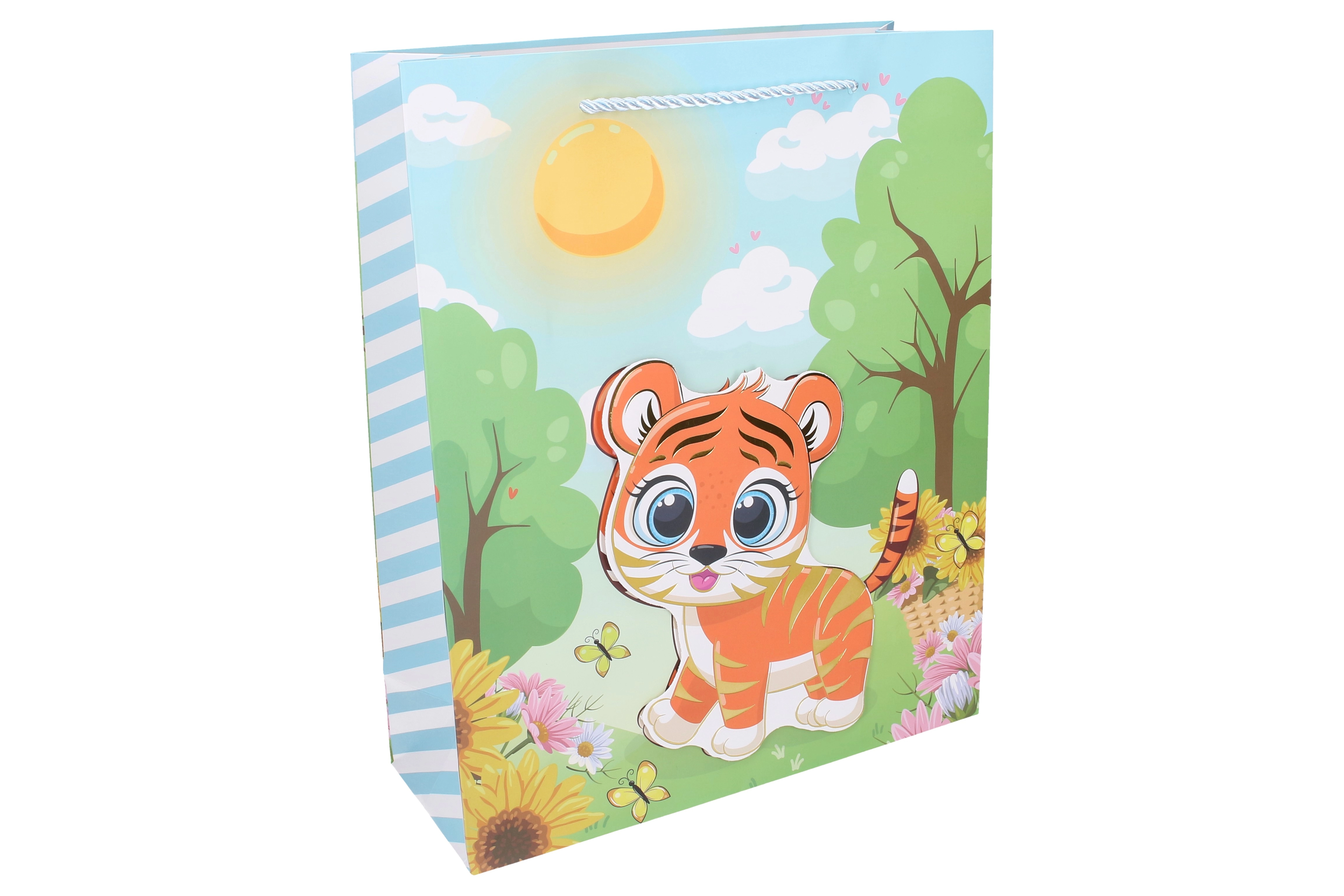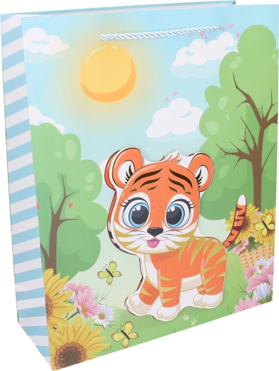 Vrečka je primerna za rojstne dneve, praznike, otroške zabave in drobne pozornosti. Zahvaljujoč kompaktni velikosti S zlahka sprejme majhna do srednje lahka darila, igrače, sladkarije ali kozmetiko. Izberite med štirimi priljubljenimi motivi – tiger, jelen, veverica ali mačka – in uskladite pakiranje s priložnostjo ter osebnostjo obdarovanca.