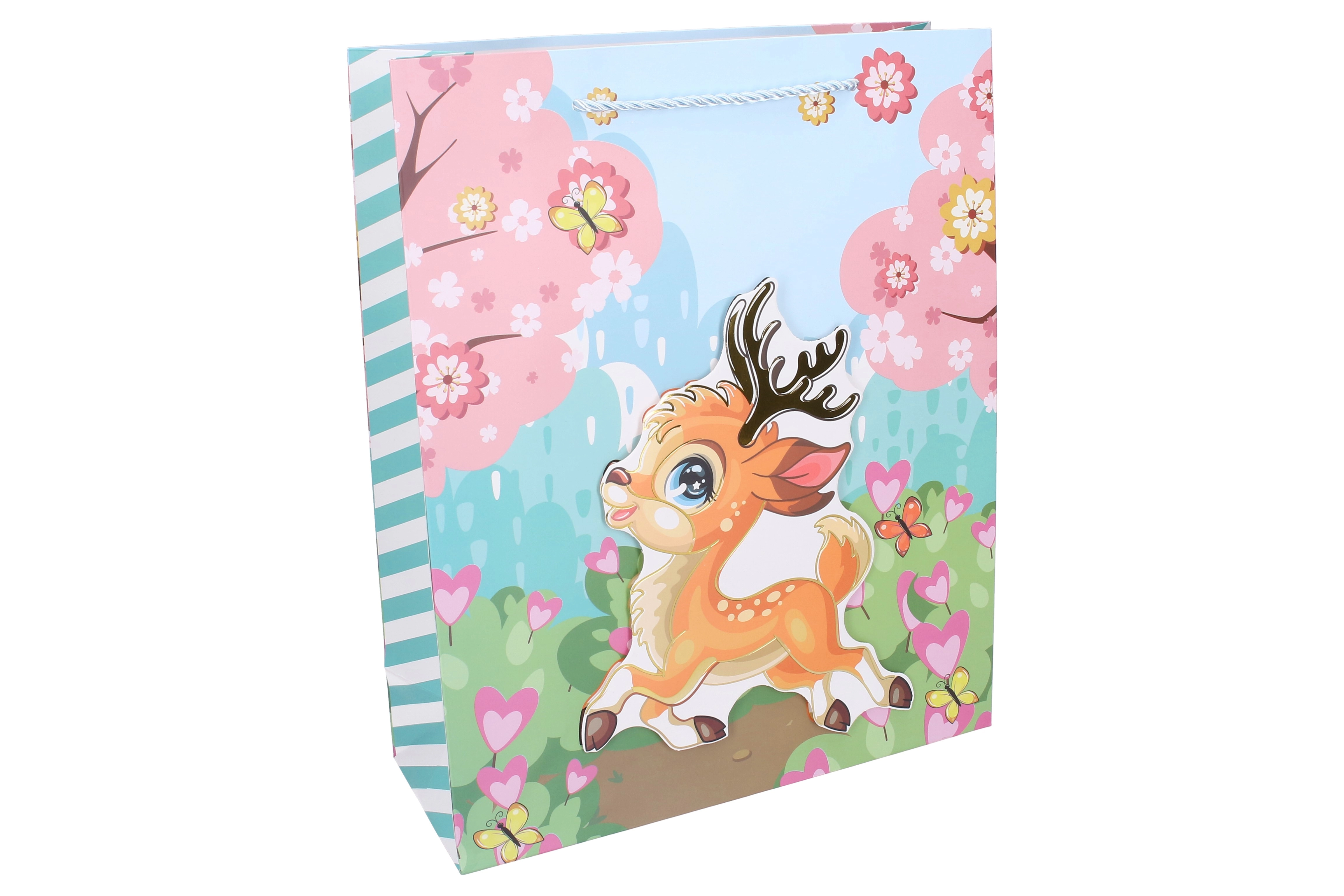 Iščete hitro in lepo zavijanje darila? Ta darilna vrečka z igrivimi otroškimi ilustracijami doda vsakemu presenečenju vesel pridih. Bleščeč tisk, kakovosten papir in močni vrvni ročaji zagotavljajo udobno in varno prenašanje.