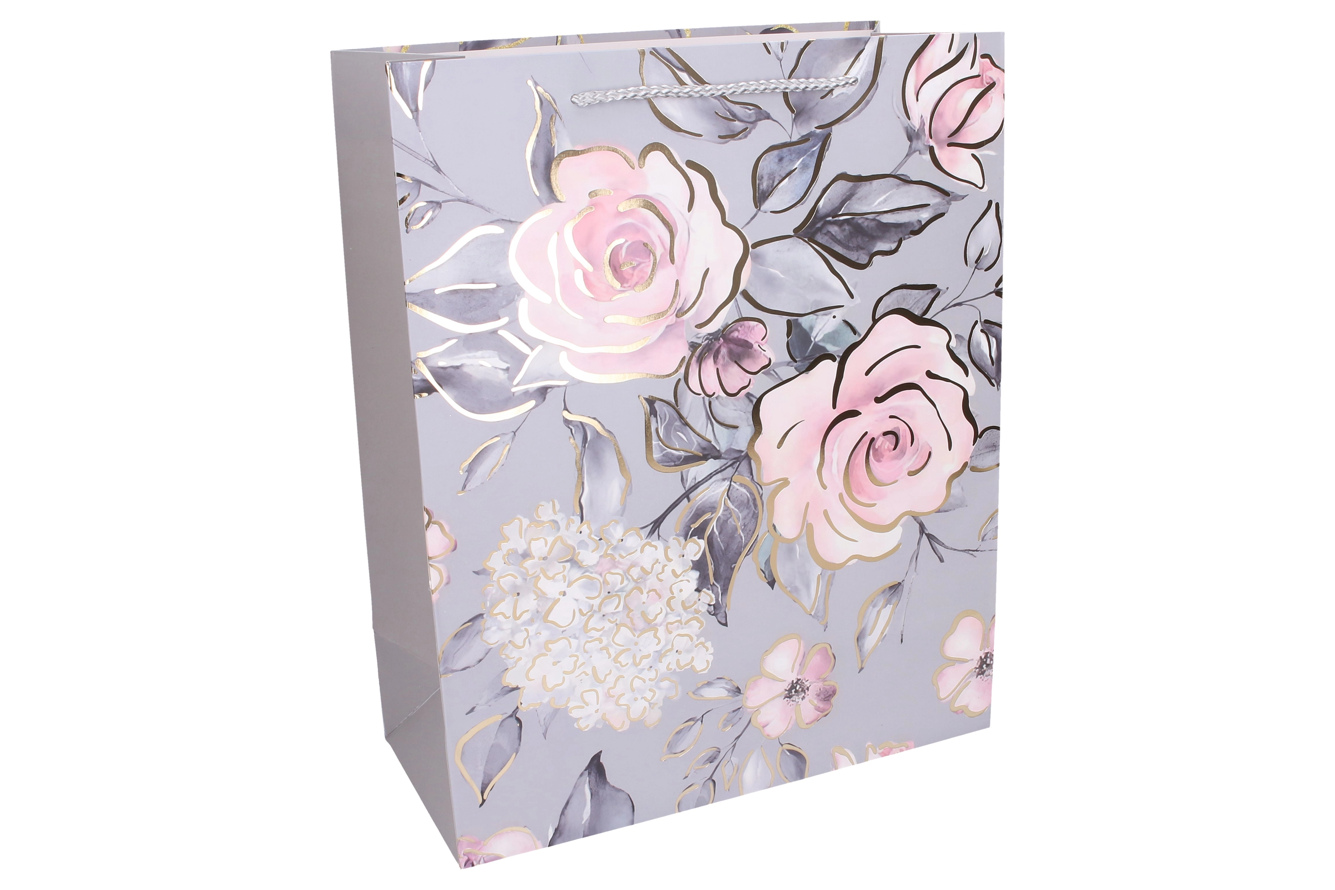 Elegantna darilna vrečka velikosti S z merami 18 × 23 × 10 cm je idealna za manjša darila skozi vse leto. Ponuja čvrsto izvedbo, razširjene (gusset) stranice za več prostora in stilske cvetlične motive z metalnimi poudarki. Zahvaljujoč udobnim vrvicam/satenastim ročajem in usklajenim barvam zagotavlja reprezentativno in varno pakiranje vašega darila.