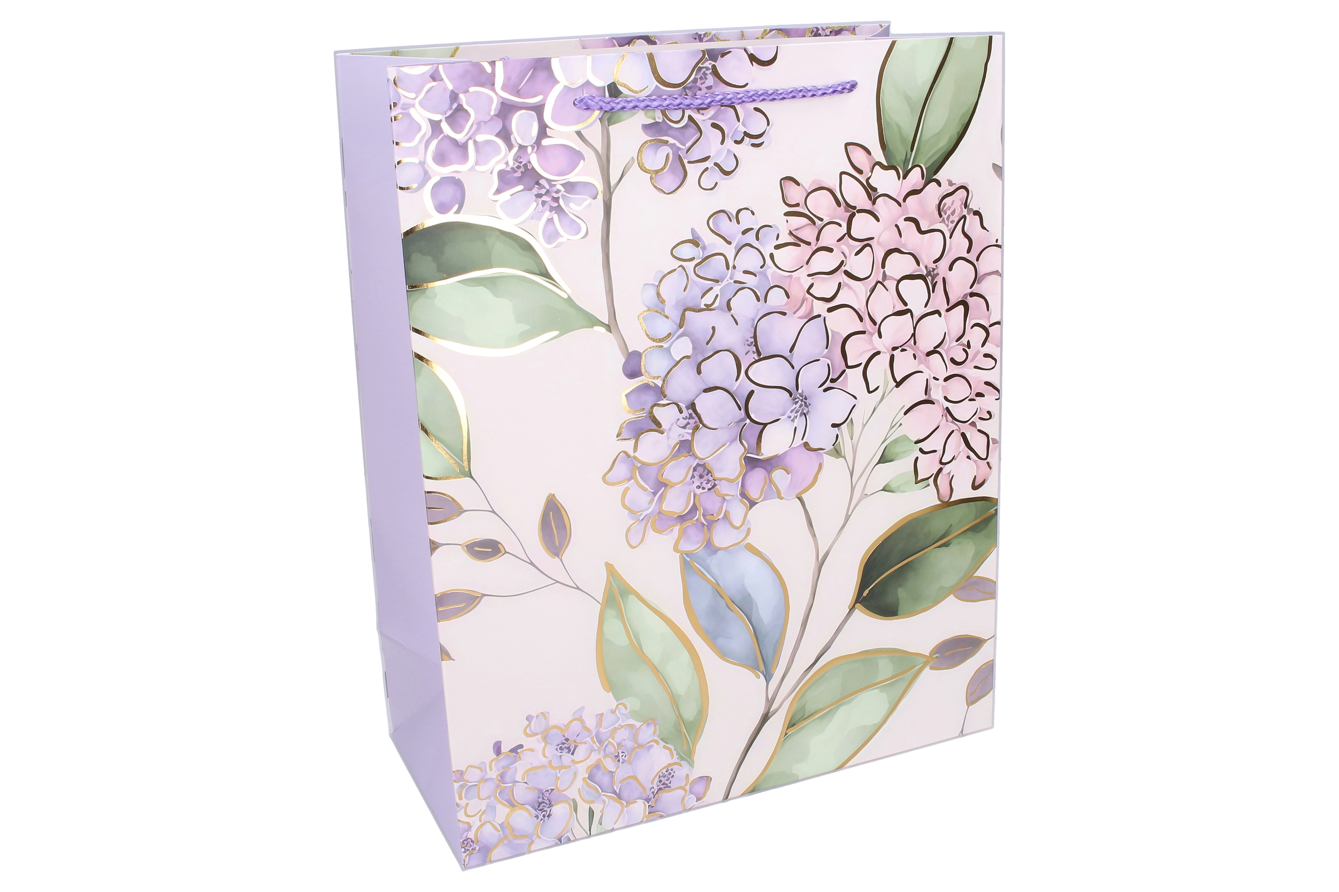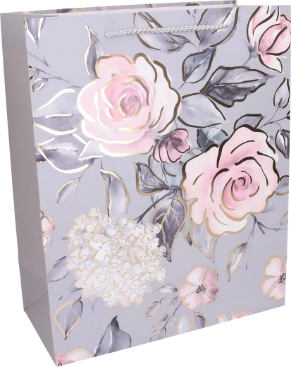 Zahvaljujoč stranskim gubam sprejme več, kot bi nakazovala njena kompaktna velikost, močni vrvni ročaji pa olajšajo prenašanje lažjih daril. Na voljo v 4 različicah cvetličnega dizajna, zato zlahka izberete slog glede na priložnost.