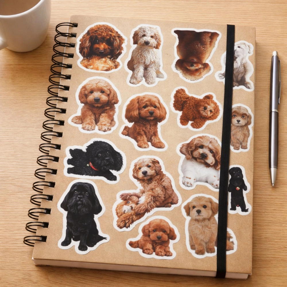 Obogatite svoje ustvarjalne projekte s setom nalepk s pudlji, ki ponuja pester izbor realističnih fotografij v različnih pozah in slogih. Nalepke so odlične za okraševanje zvezkov, scrapbookov, planerjev ter šolskih potrebščin in vsakemu predmetu dodajo osebni čar.