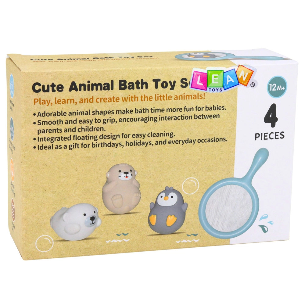 Ljubek kopalni komplet z mehkimi živalicami spremeni vsako umivanje v zabavo. Vsebuje 3 stiskalne živalice (vidra, pingvin, polarni medved) in mrežico za lovljenje. Igrače so prijetne na dotik, lahke za otroško roko in plavajo na vodi. Pastelne barve in varna izdelava spodbujajo čutni razvoj in koordinacijske spretnosti.