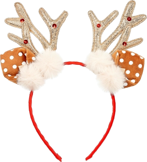 Dodajte otroški pričeski čar božiča! Stilski naglavni obroč SOUZA! je prevlečen z rdečim trakom ter okrašen z jelenjimi rogovmi in ušeski. Zaradi nizke teže in nežne izdelave je prijeten za celodnevno nošenje in ne tišči.