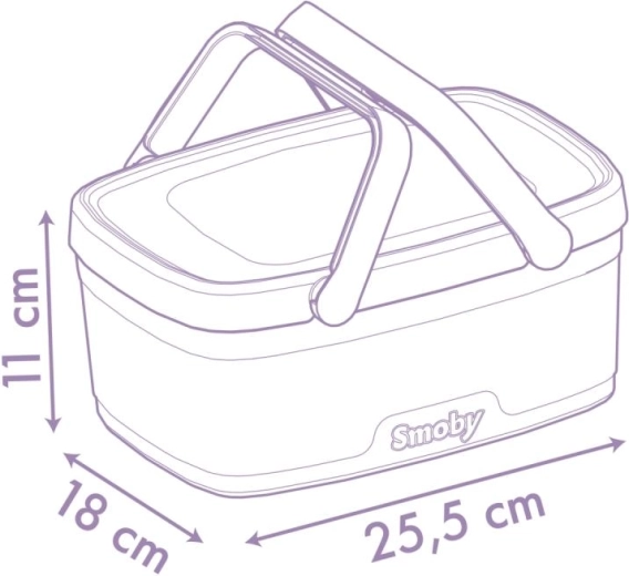 V kompletu je 14-delni pribor, idealen za igro v dvoje: 2 krožnička, 2 žlički, 2 noža, 2 vilici, 2 kozarčka, vafelj, smetana, borovničeva pita in steklenica limonade. Vse se priročno spravi v koš, zato je set lahko shranljiv in pripravljen na pot.