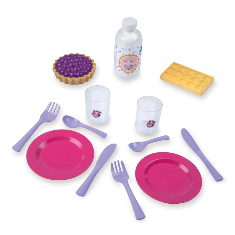 Krožnički, pribor, kozarčki in sladke dobrote omogočajo otrokom pripraviti popolno pogostitev za dva.