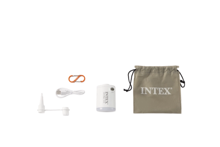 Kompaktna in lahka električna črpalka INtex Quick-Fill USB 200R za hitro napihovanje vzmetnic, ležalnikov in igrač. Ponuja pretok do 200 l/min, polnjenje prek USB‑C, vgrajeno baterijo 3,7 V in praktično LED svetilko do 6 ur. Zahvaljujoč karabinu jo zlahka pripnete na nahrbtnik ali šotor – idealno za kampiranje in potovanja.