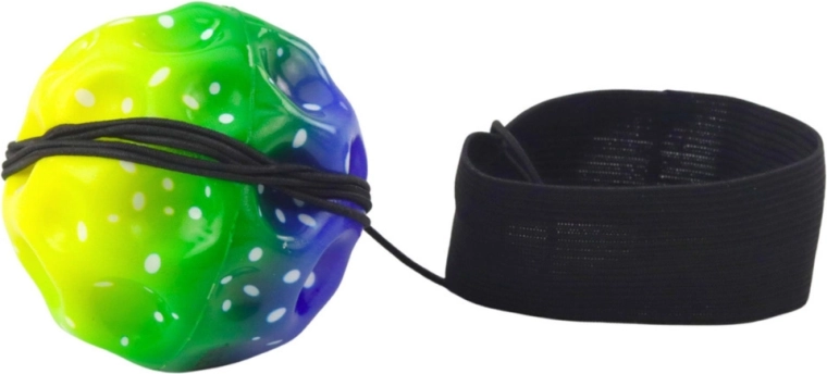 Senzorična antistresna žogica s prožno vrvico in zapestnim paščkom se po vsakem metu ali udarcu vrne, zato je otrokom ni treba loviti. Mavrične barve motivirajo k gibanju, vbočena struktura prijetno masira prste, podpira fino motoriko in zbranost.