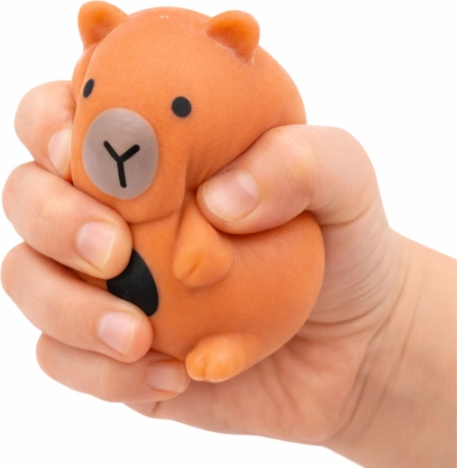 Antistresna igrača v obliki kapibare je izdelana iz mehkega in prožnega squishy materiala, ki je prijeten na dotik ter je odličen za stiskanje, gnetenje in raztezanje. Po stisku se za kratek čas deformira, nato pa se počasi vrne v prvotno obliko, kar deluje pomirjujoče in sproščujoče.