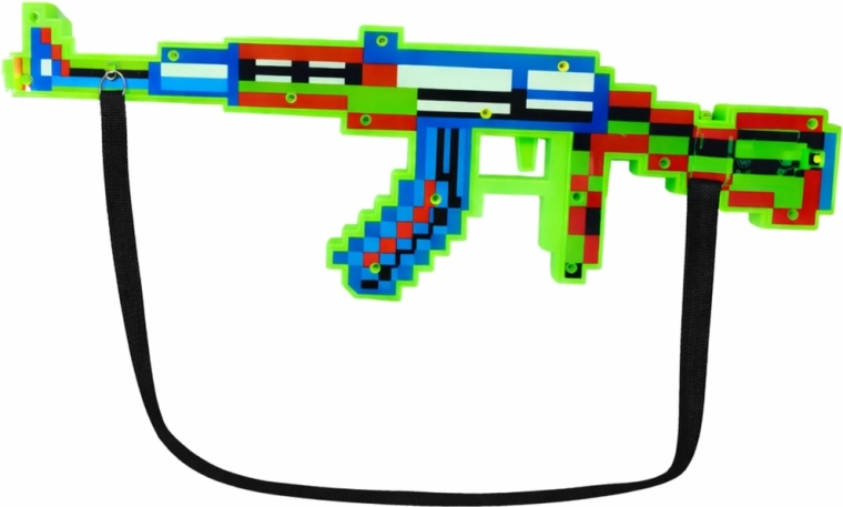 Ta stilska pikslasta igrača puška vnaša v otroško igro vzdušje retro videoiger. Zahvaljujoč intenzivnim svetlobnim učinkom in realističnim zvokom strelov je vsaka zgodba bolj dinamična in zabavna. Lahka konstrukcija in snemljiv ramenski trak zagotavljata udobno prenašanje tudi pri daljši igri.