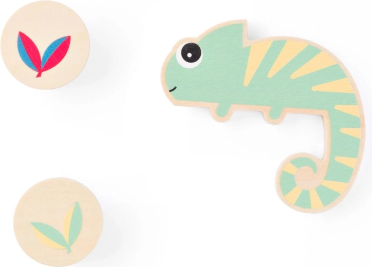 Zabavna lesena igra za 2–10 igralcev, od 4. leta naprej, v kateri poskušate prepričati kameleona in najti list, pod katerim se ne more skriti. Otroci dvigujejo okrogle lesene žetone z listi in iščejo tiste, ki imajo dve barvi, ki jih kameleon nima. Igra ponuja tri stopnje težavnosti, uri spomin in pozornost ter je zaradi kakovostne izdelave iz lesa iz odgovorno upravljanih gozdov trajna in vzdržljiva.