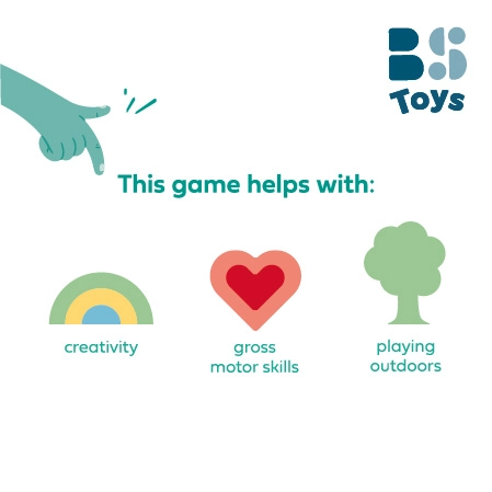 Ta vsestranski zunanji komplet spremeni vsak pločnik ali dvorišče v pisano igrišče. Otroci si zlahka narišejo igralna polja in po ilustriranih kartah preizkusijo priljubljene aktivnosti – od klasike, kot sta ristanc ali križci in krožci, do dinamičnih iger, kot so tarča, človek ne jezi se ali skok v daljino. Močne pastelne krede puščajo jasne sledi tudi na bolj grobih površinah in jih je mogoče zlahka sprati.