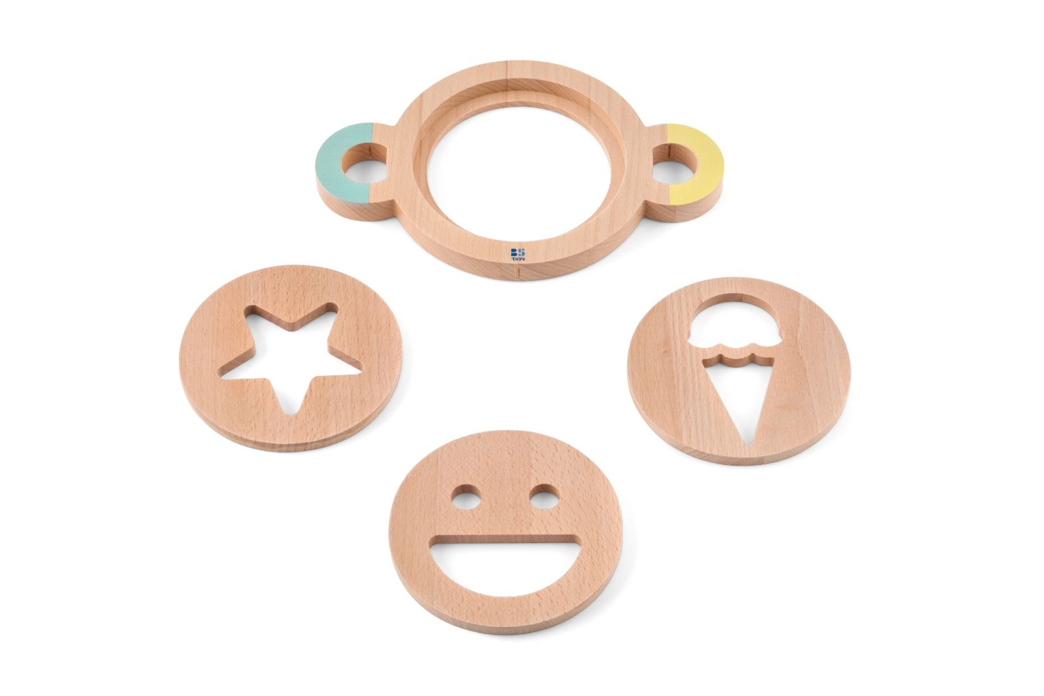 Ta kakovosten leseni komplet vsebuje osnovo in tri modelčke s priljubljenimi motivi (zvezda, sladoled, smeško). Otroci preprosto pritisnejo modelček v pesek in ustvarijo čist, izrazit odtis. Zaradi naravne površine in premišljene oblike se modelčki zlahka držijo tudi v majhnih rokah.
