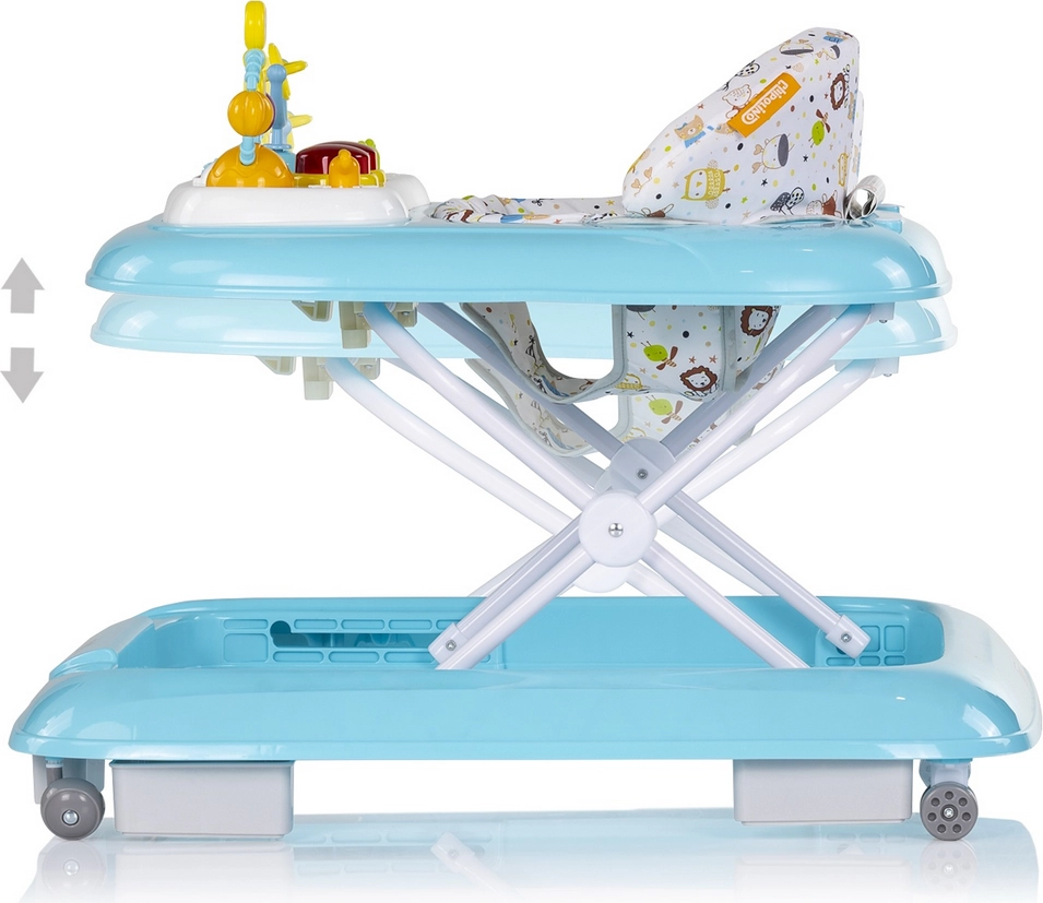Interaktivni hojicek Chipolino Baby Steps v modri barvi podpira prve korake vašega dojenčka in jih spremeni v varno ter zabavno dejavnost. Ponuja nastavljivo višino v 3 položajih, mehko sedišče z visoko naslonjalo in zabavni panel z melodijami, lučkami in gumbi za razvoj čutov in fine motorike. Stabilna konstrukcija, 6 protidrsnih zavor in 4 kolesca (2 sprednja vrtljiva 360°) zagotavljajo zanesljivost pri vsakem koraku.