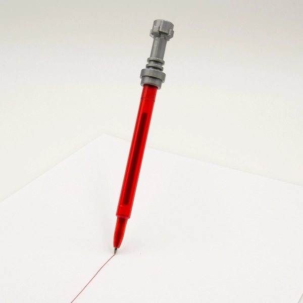 Uživaj v pisanju z gel peresom v obliki svetlobnega meča, ki bo navdušilo oboževalce STAR WARS in ljubitelje izvirnih dodatkov. Rdeče črnilo ustreza barvi ohišja in zagotavlja izrazite, čiste linije brez packanja.